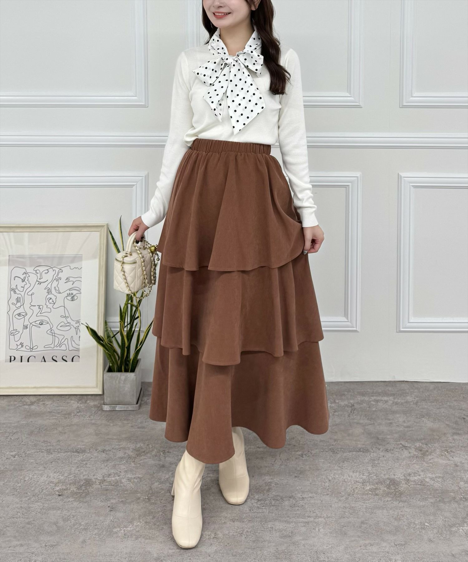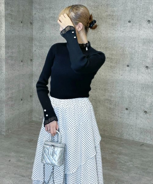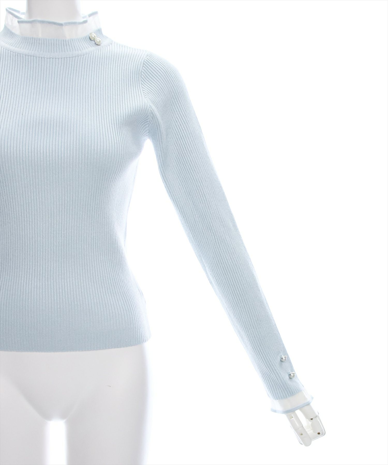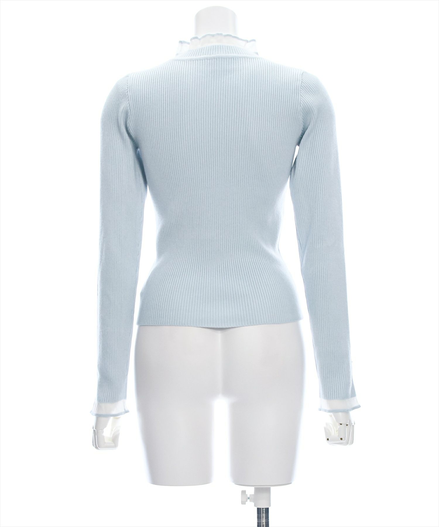clear シアーフリルネック長袖ニットトップス[CL8385]