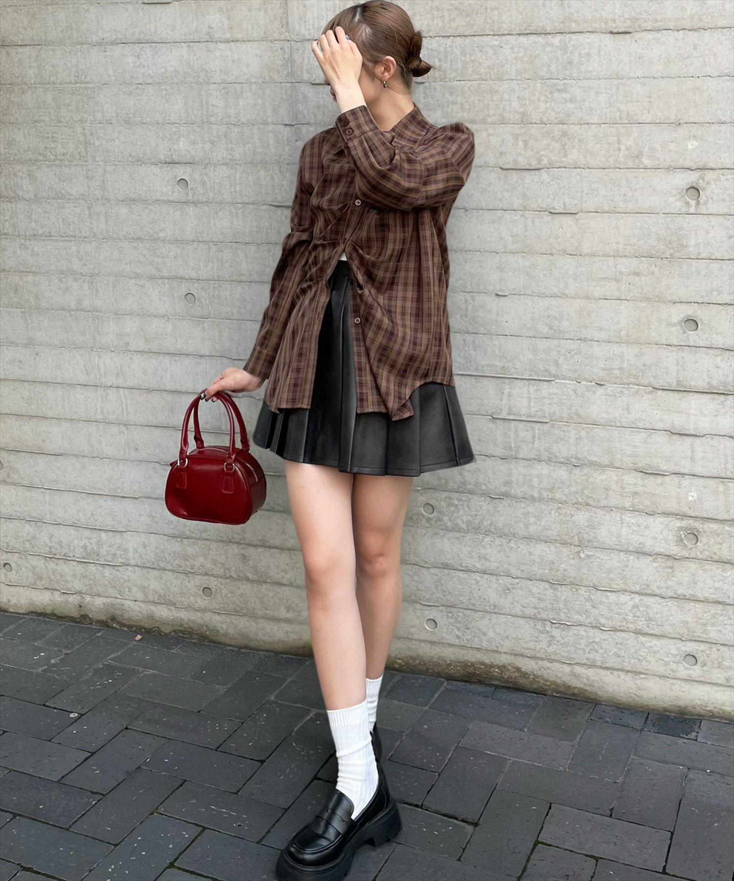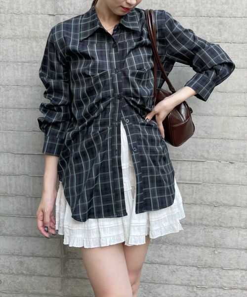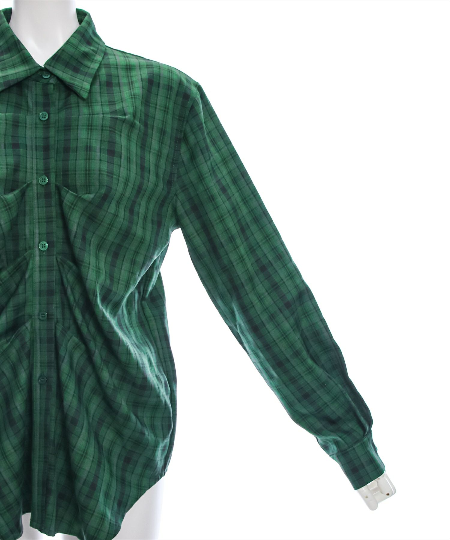clear タック入りチェック柄長袖シャツ[CL8671]