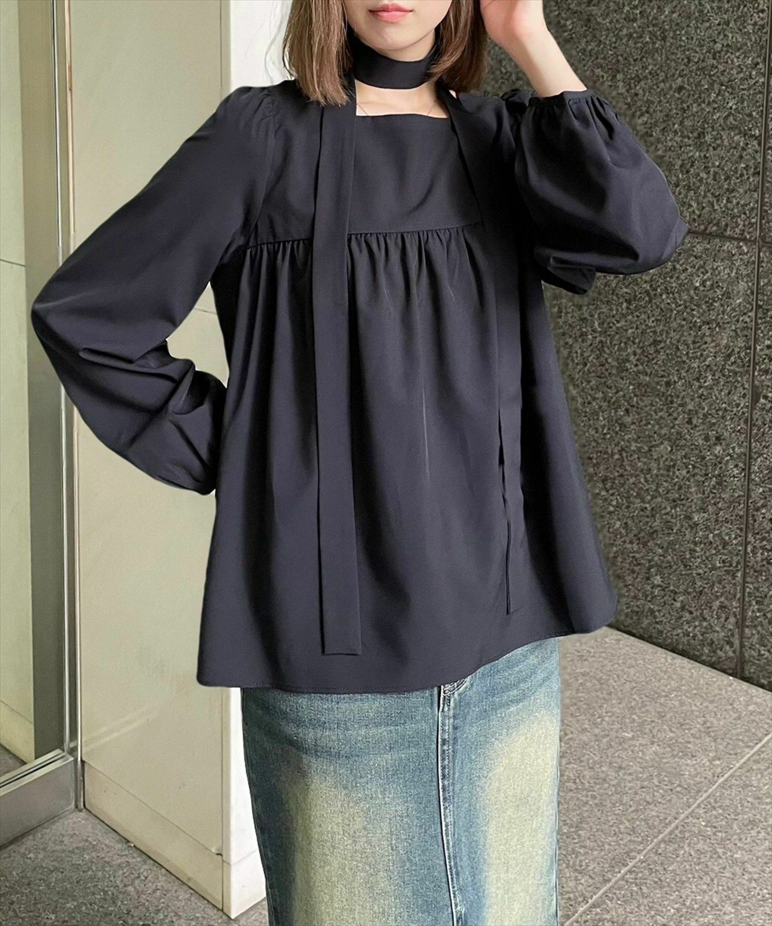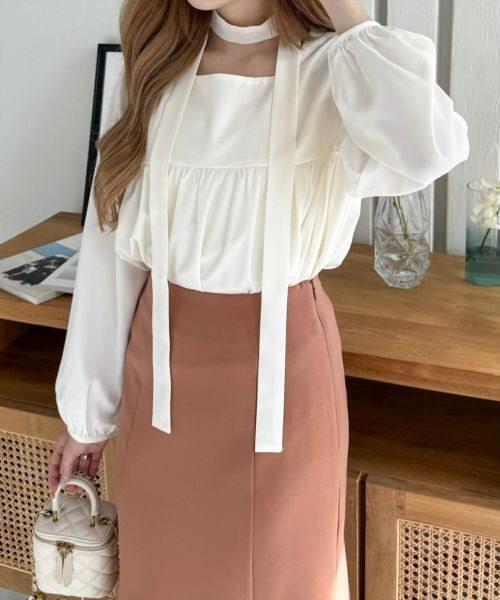 clear スカーフ付きスクエアネックブラウス[CL8659]