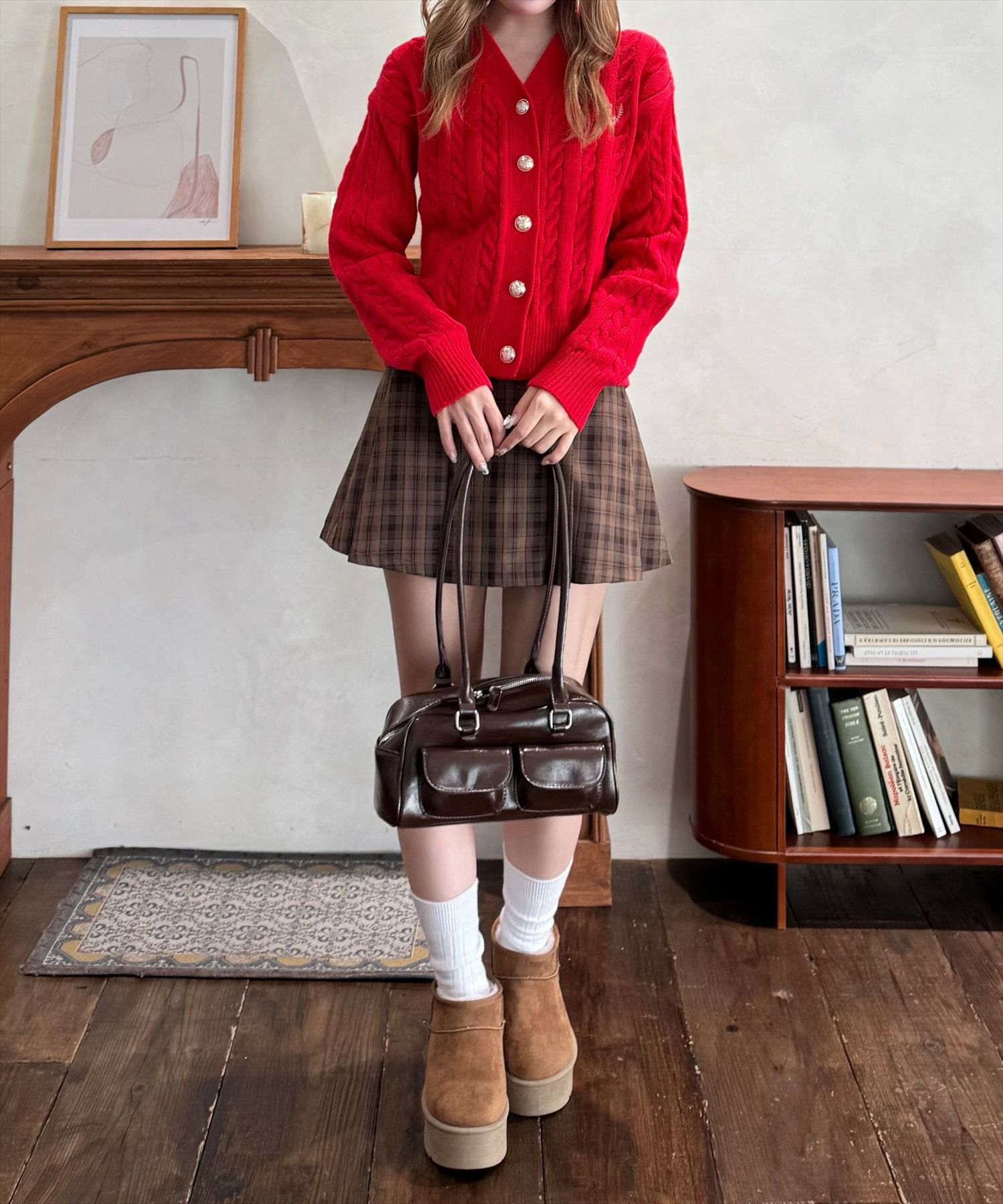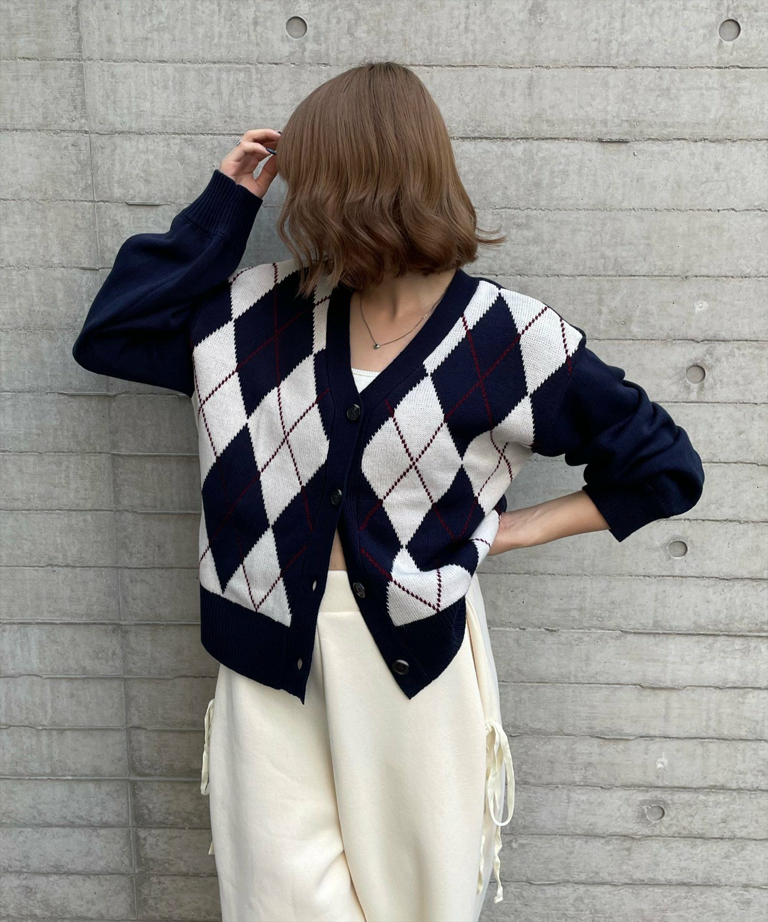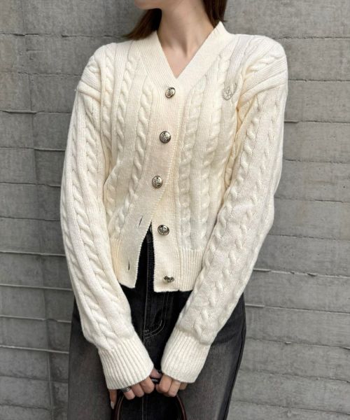 clear ワンポイント刺繍ケーブルVネックニットカーディガン[CL8652]