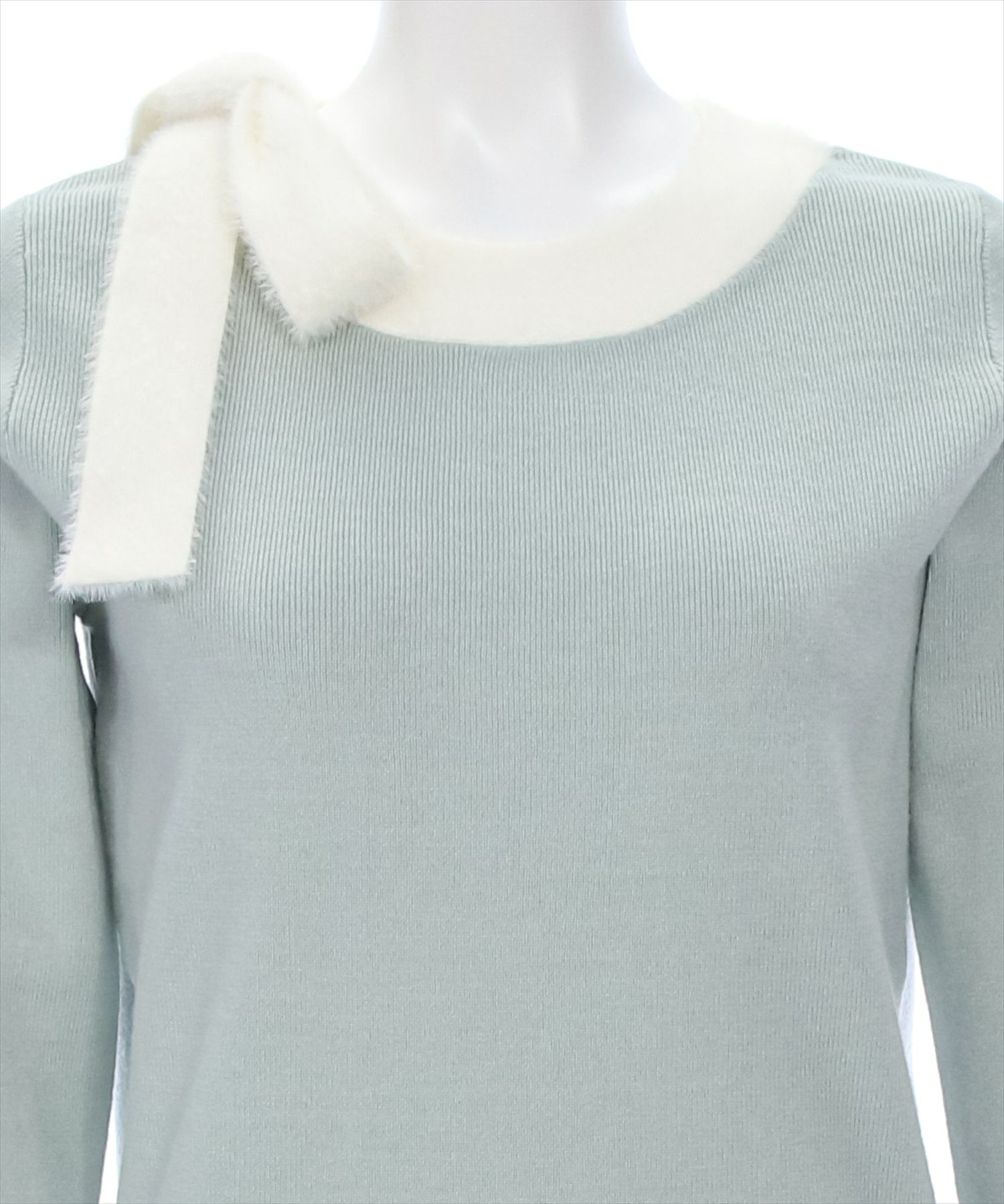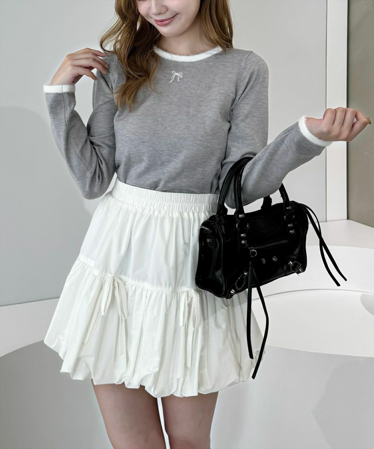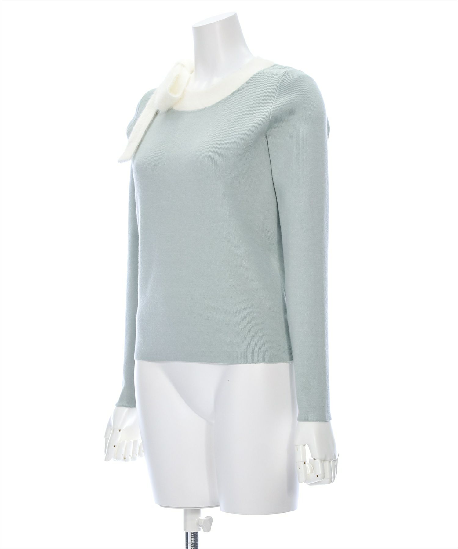 clear 袖リボン付きラメフェザーニットトップス [CL8867]