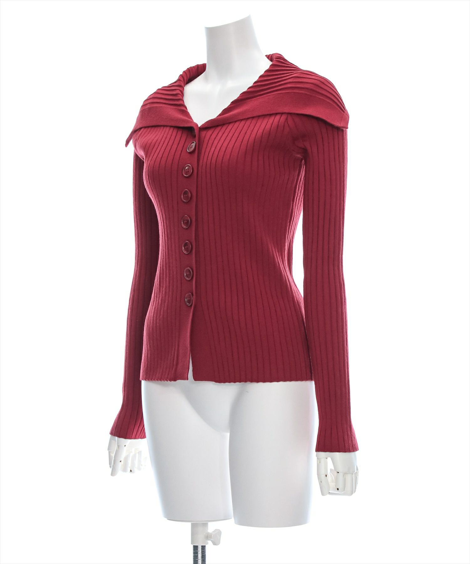 clear ビッグカラー長袖リブニットカーディガン[CL8626]