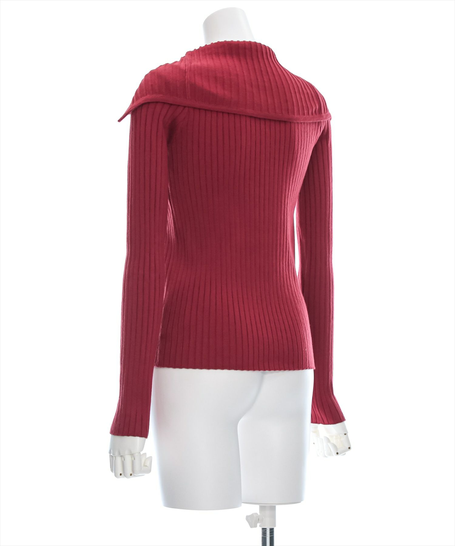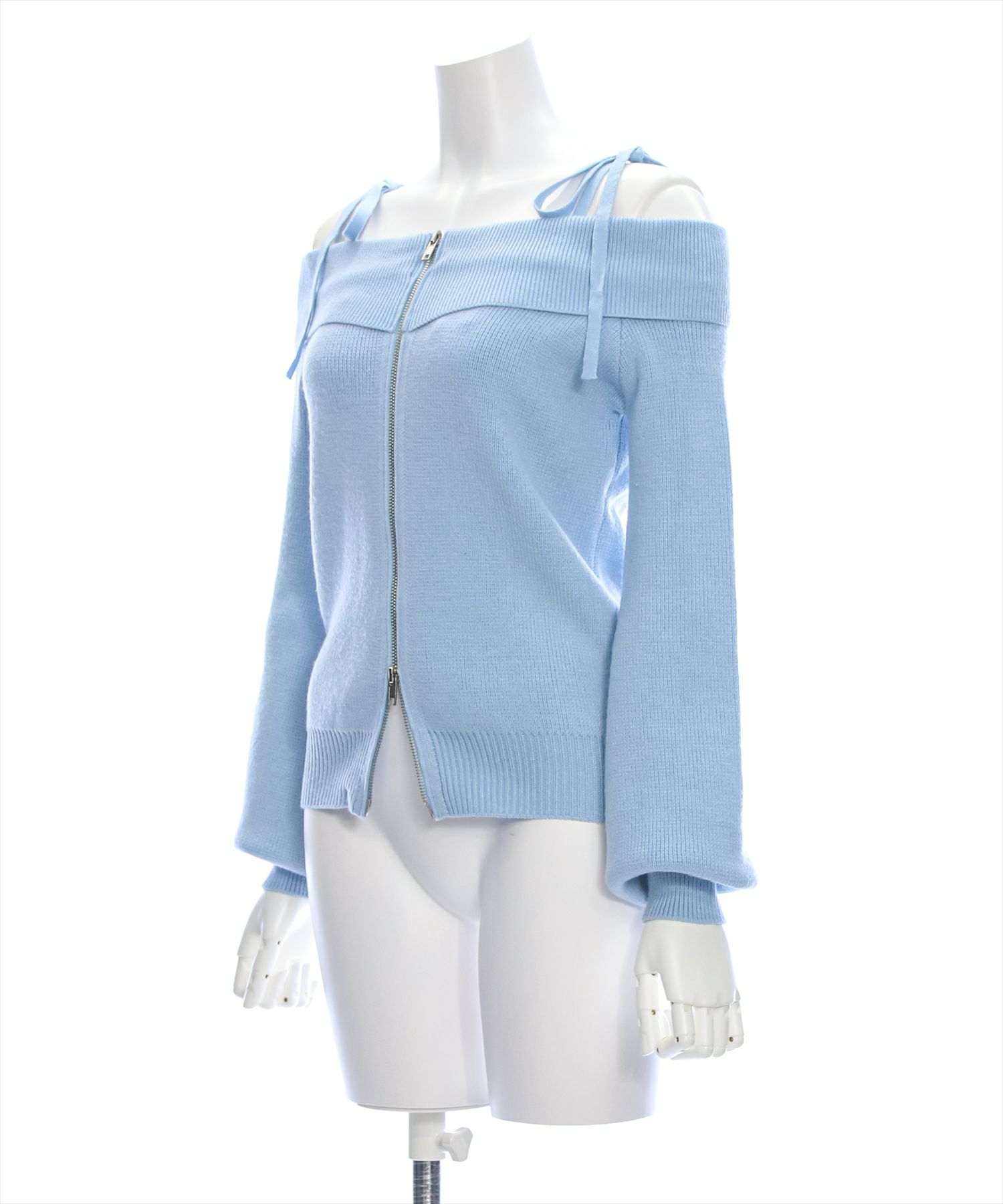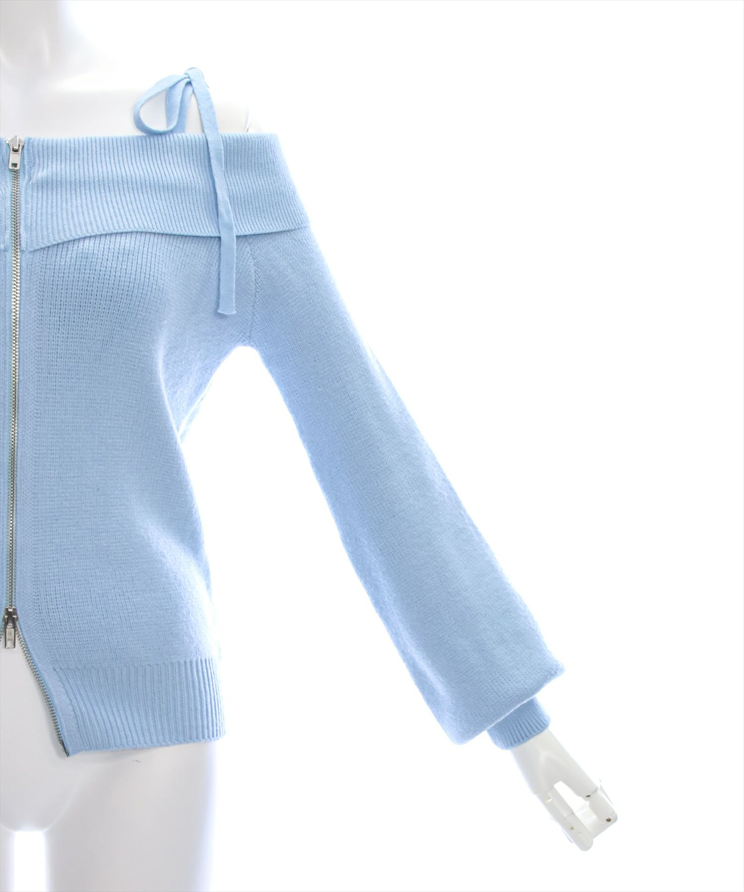 clear ダブルジップオフショルリボン付きニットトップス[CL8647]
