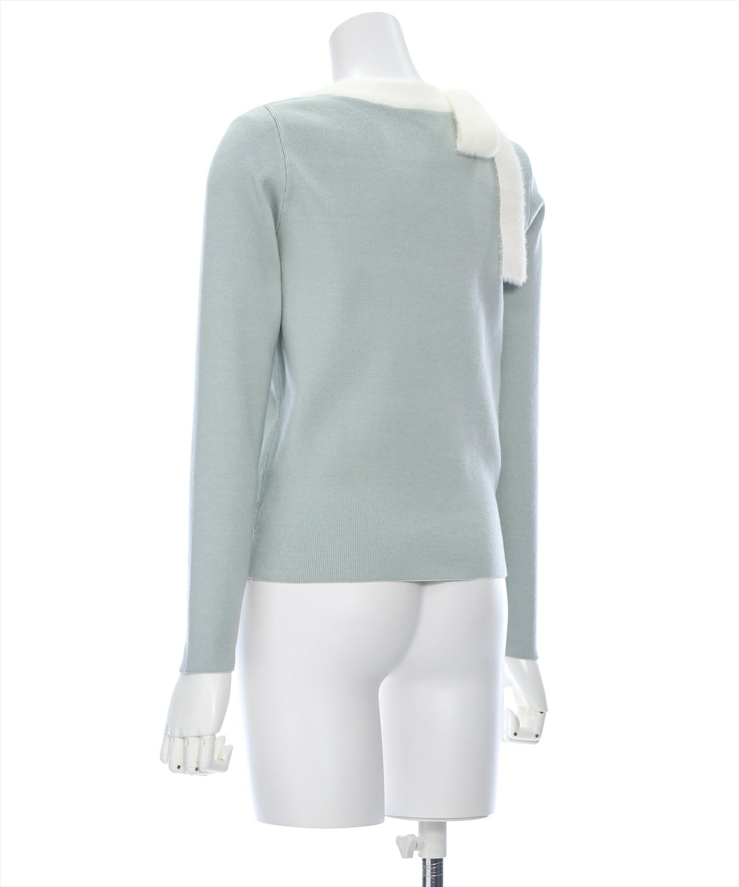 clear 袖パールフェザー配色襟付きニットトップス[CL8428]
