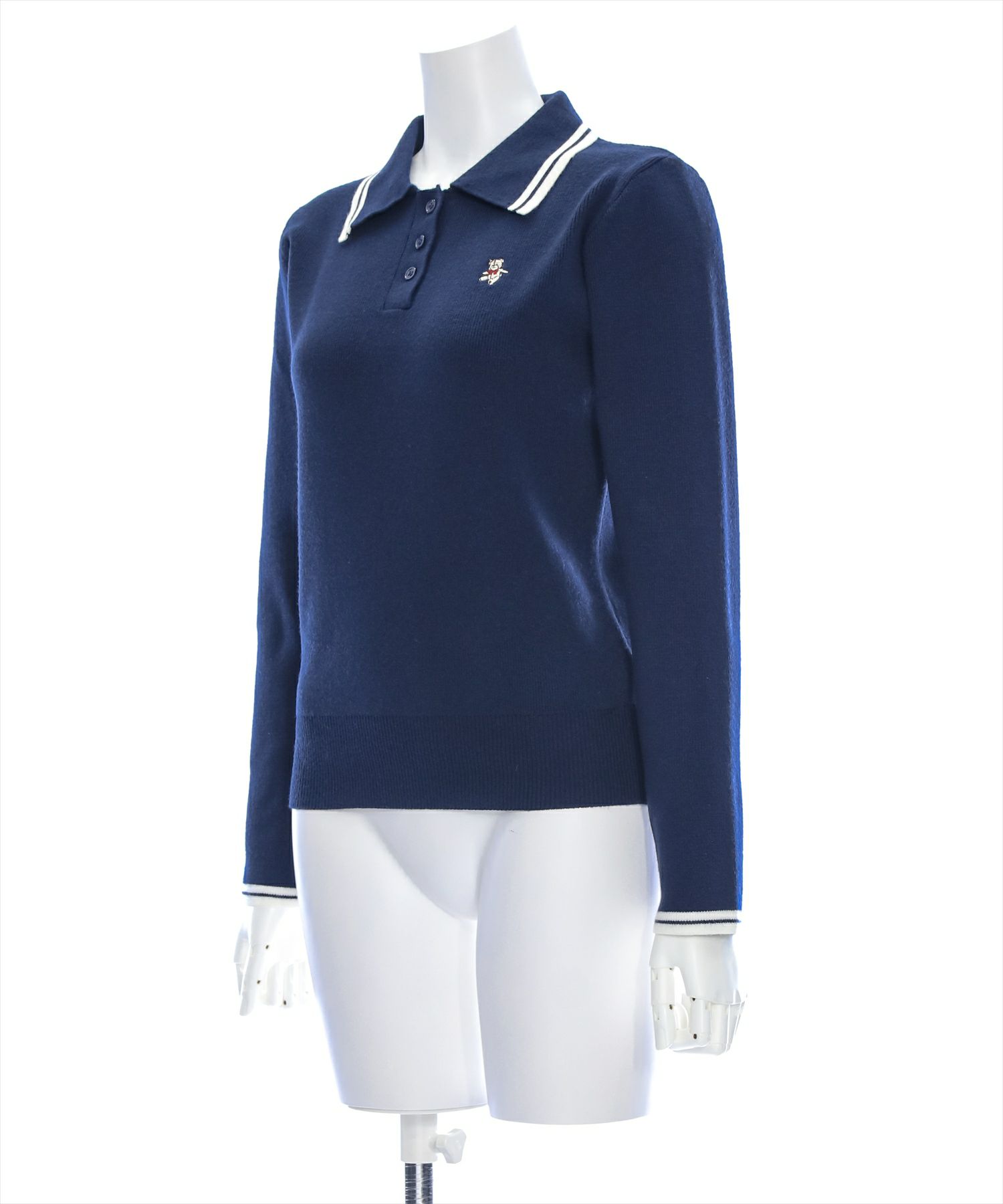 clear ベア刺繍入り長袖ポロニット[CL8574]