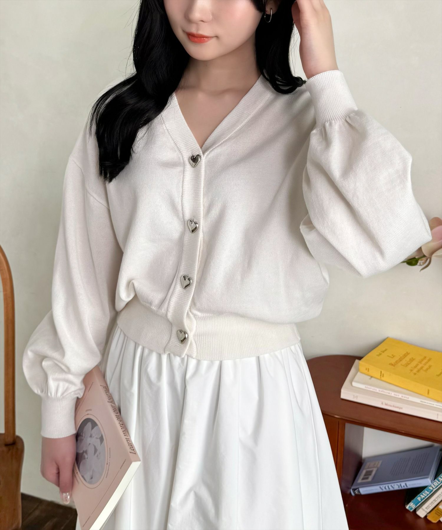 CLEAR BASIC 天竺編みハートボタンVネックニットカーディガン[CL9012]