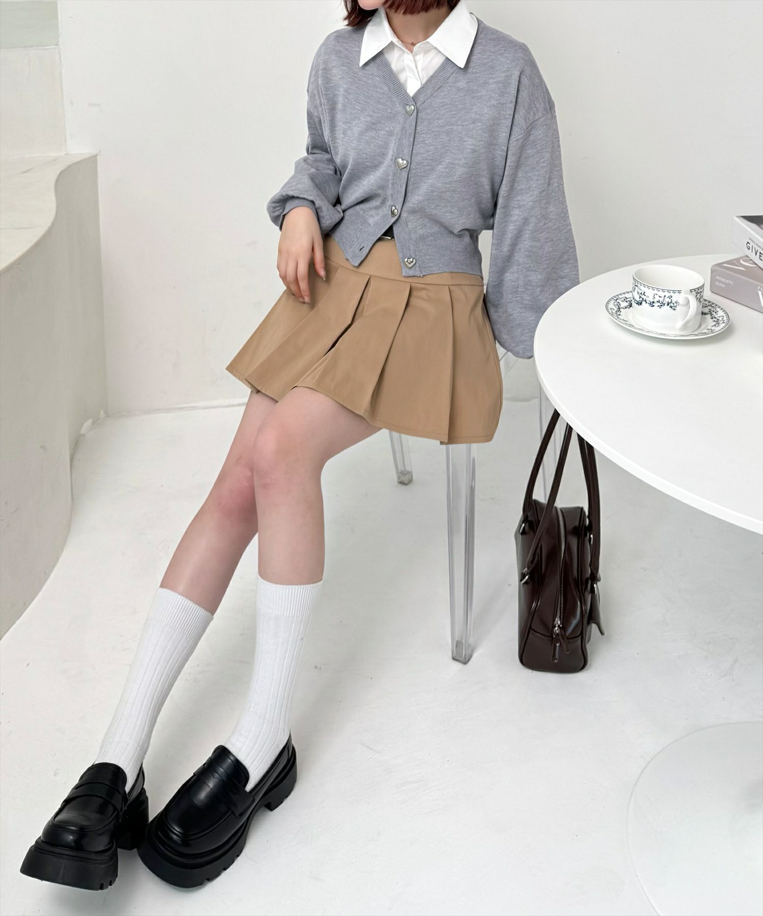 clear ベルト付きボックスプリーツミニスカート[CL8911]