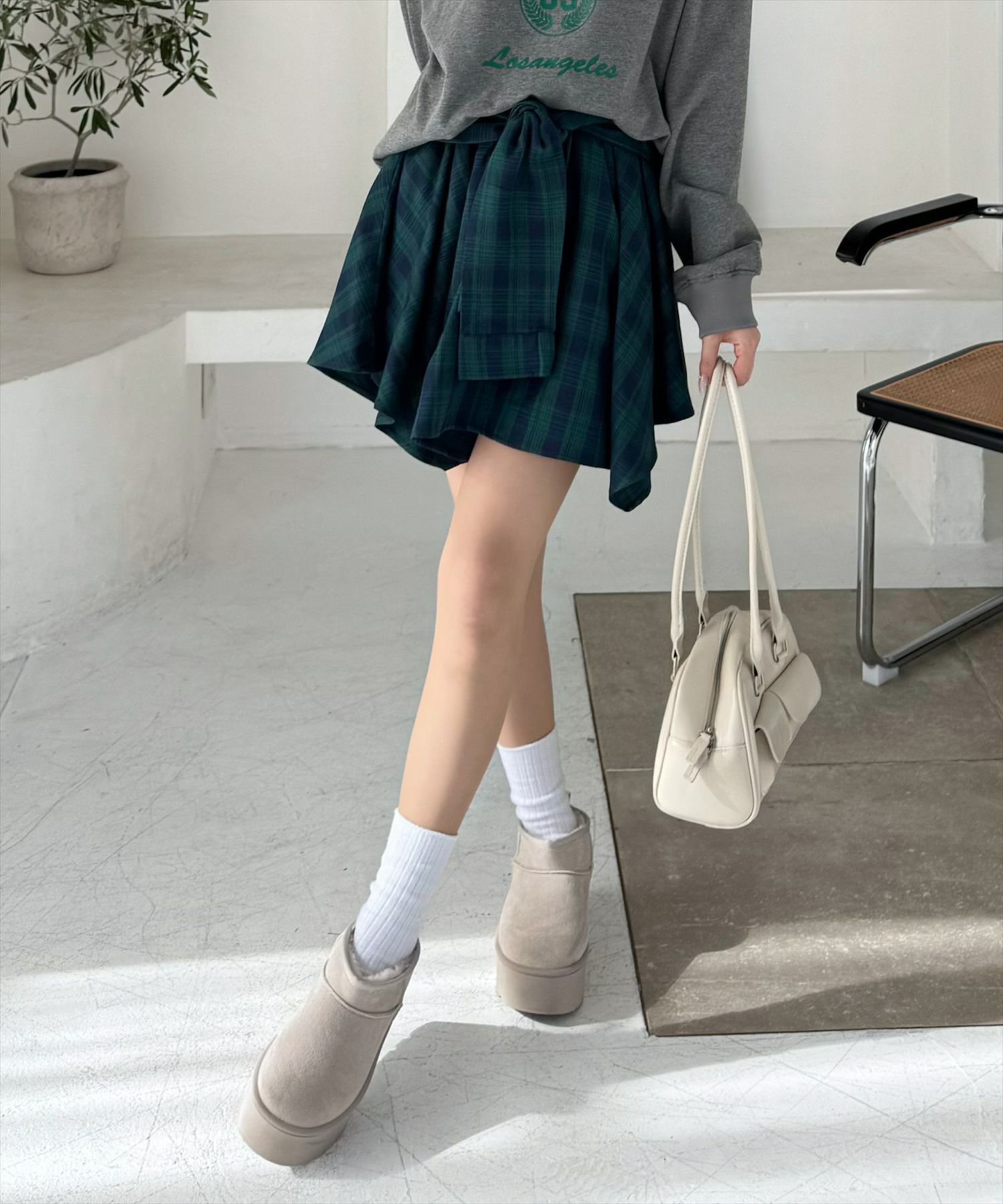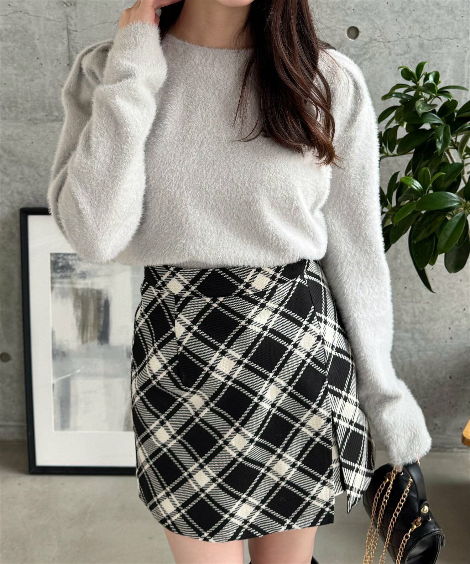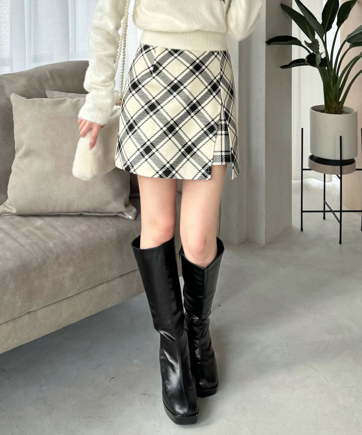 clear チェック柄ラップ風スカート[CL8913]
