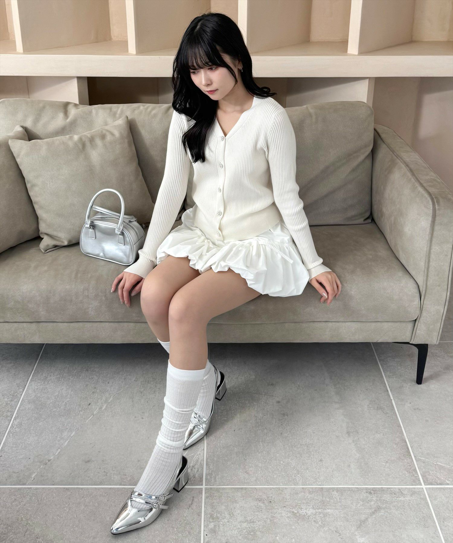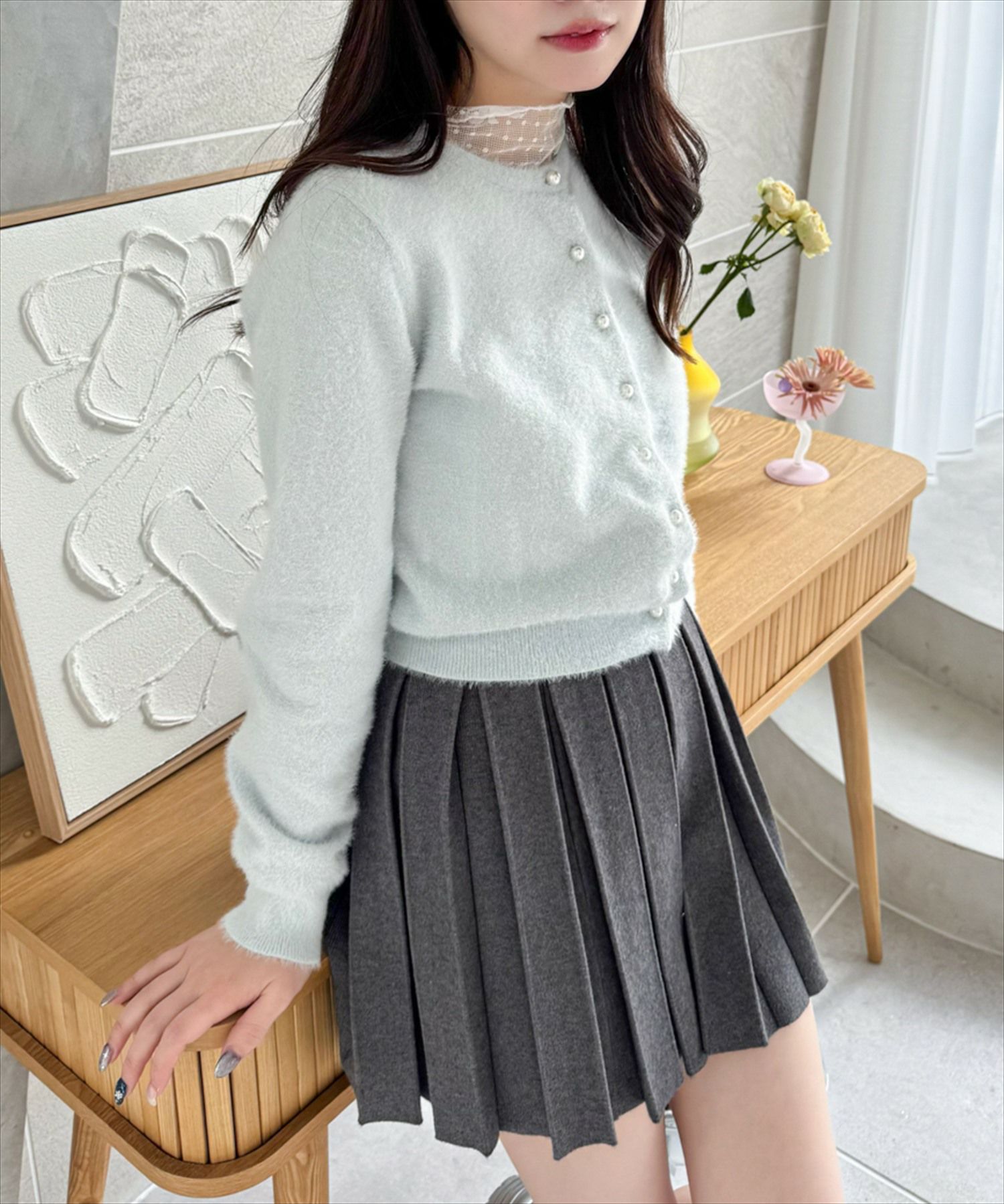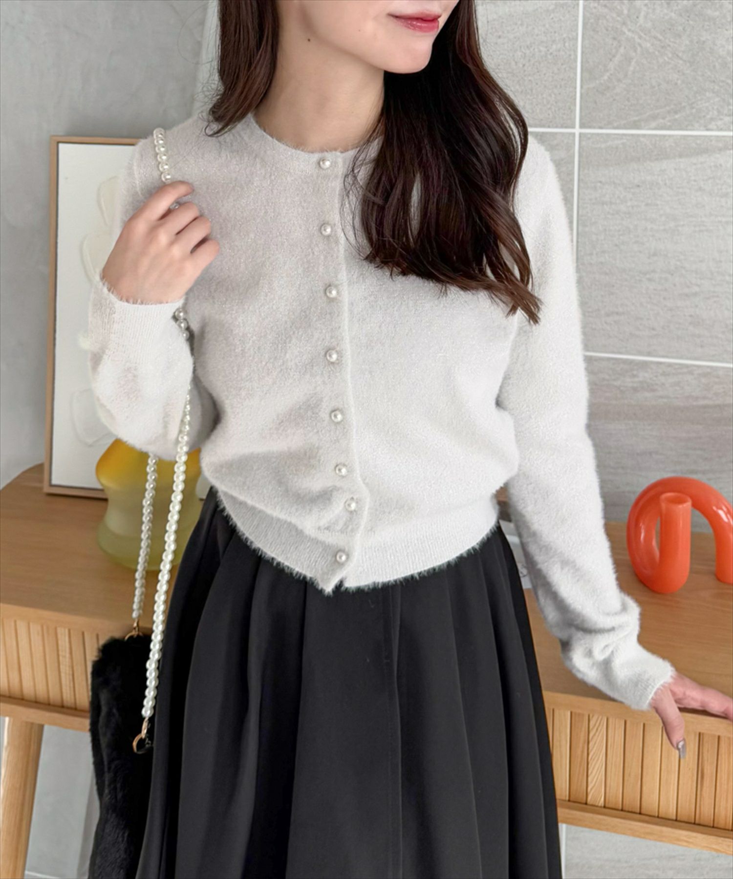 CLEAR BASIC ラメフェザーパールボタンニットカーディガン[CL8935]