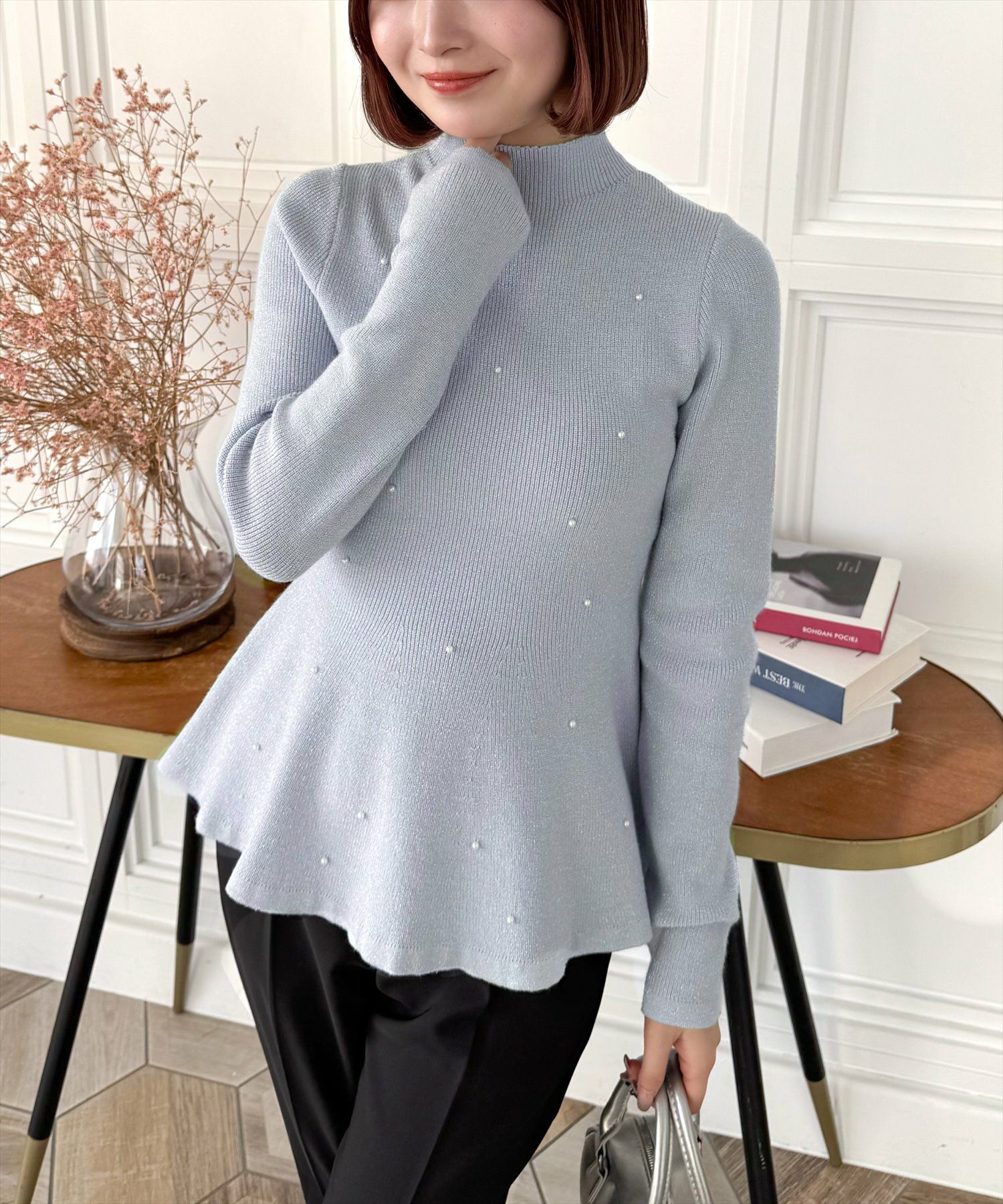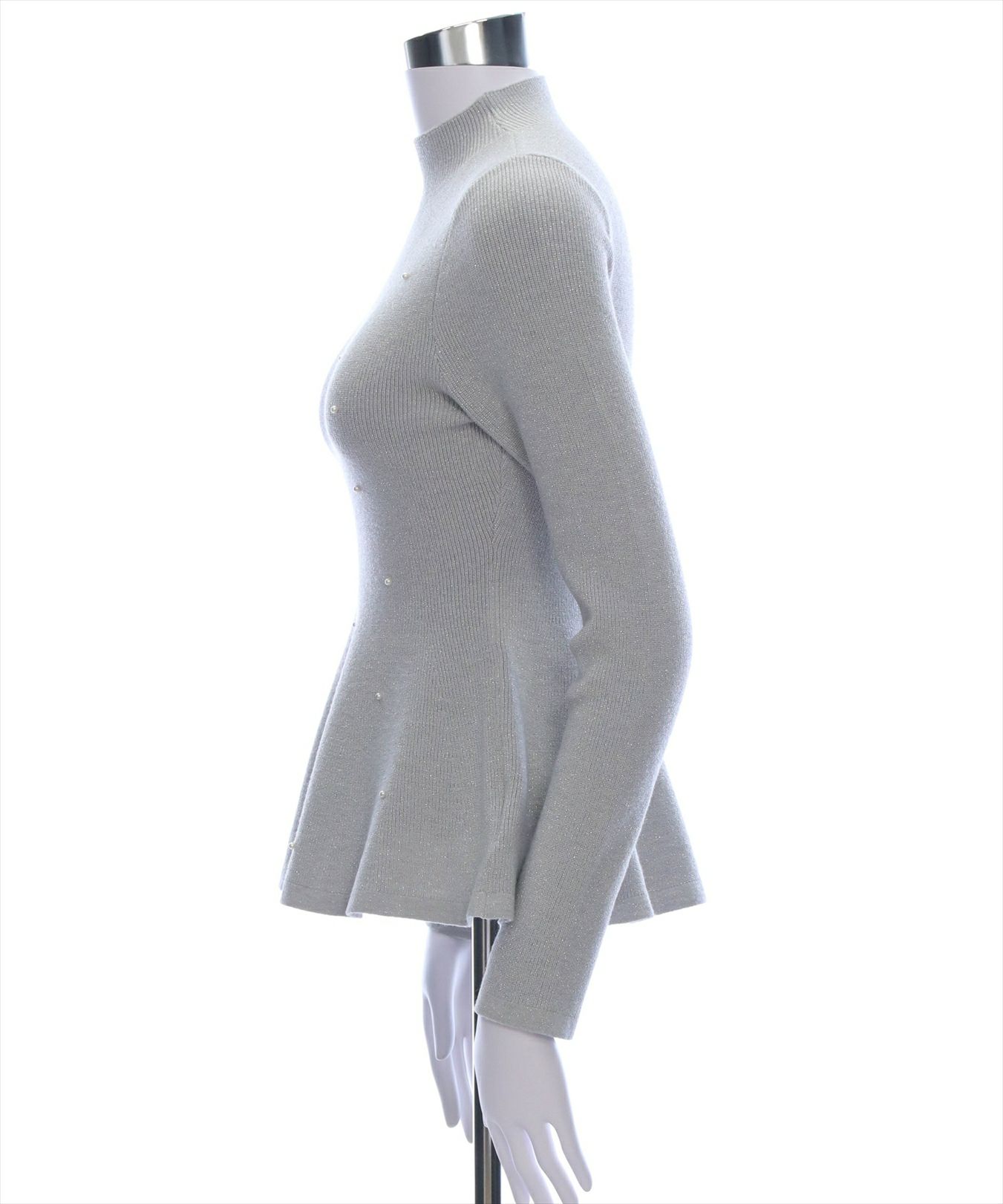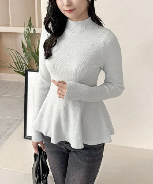 CLEAR BASIC パール付きペプラムニットトップス[CL8956]