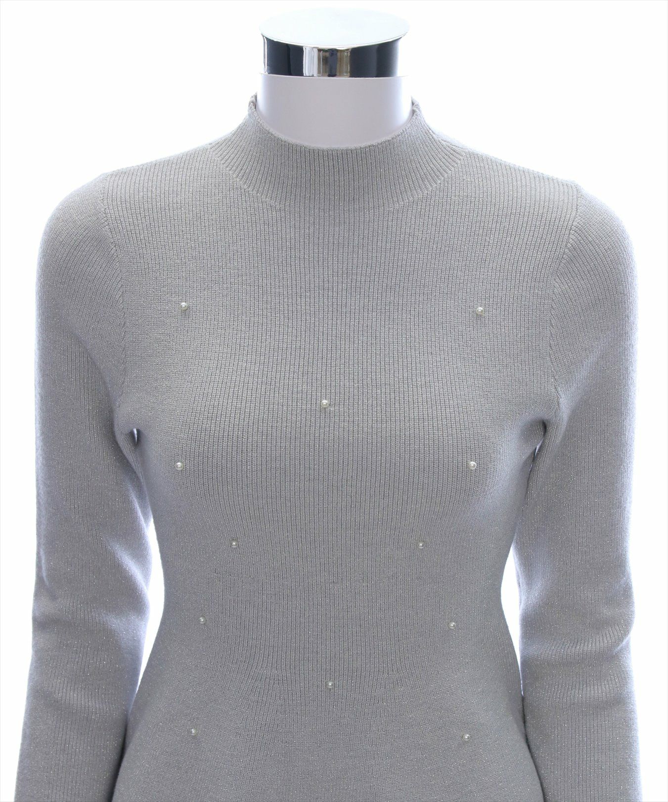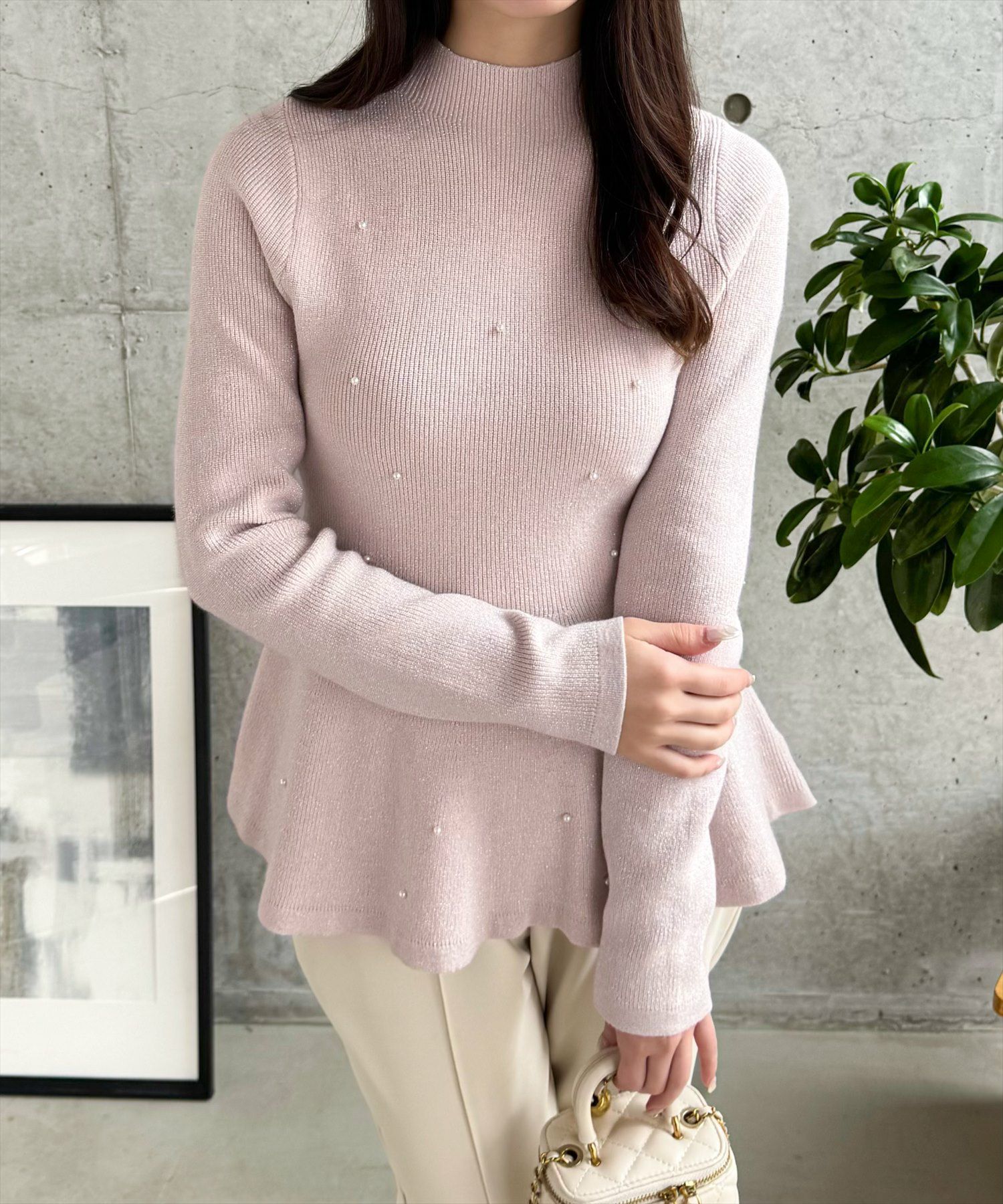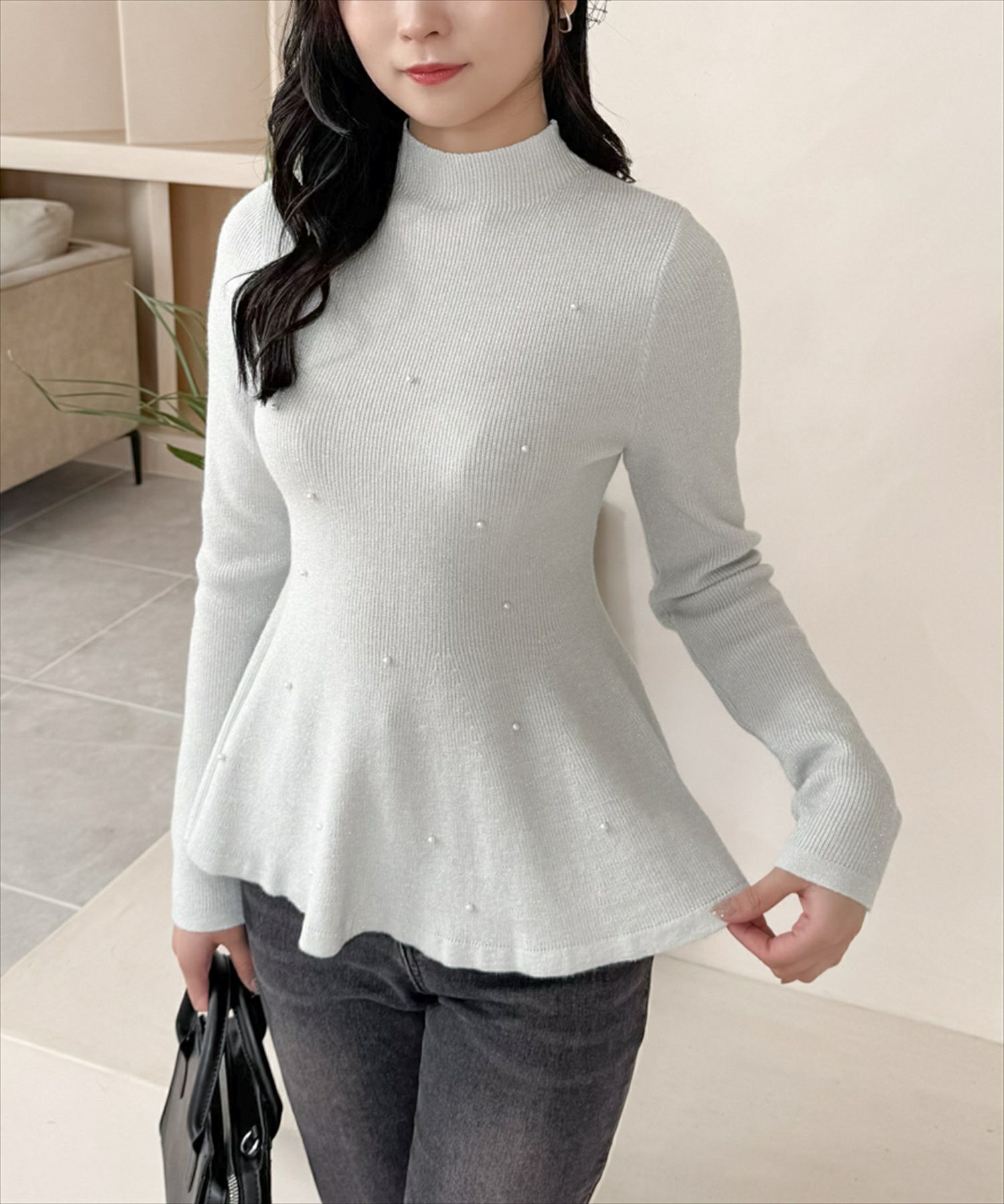 CLEAR BASIC パール付きペプラムニットトップス[CL8956]