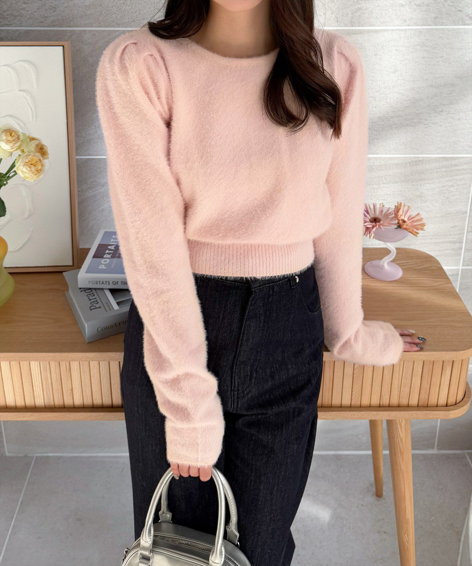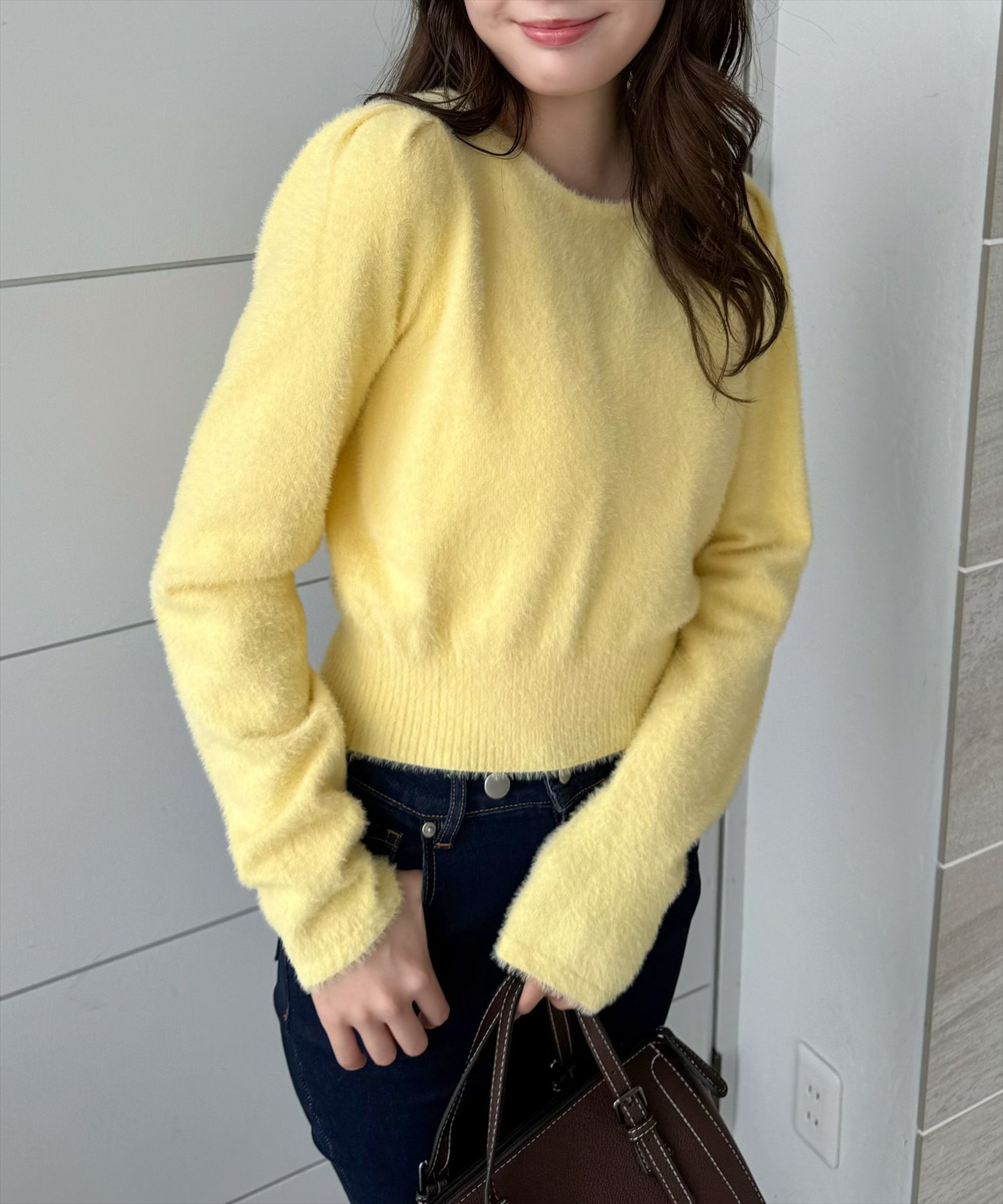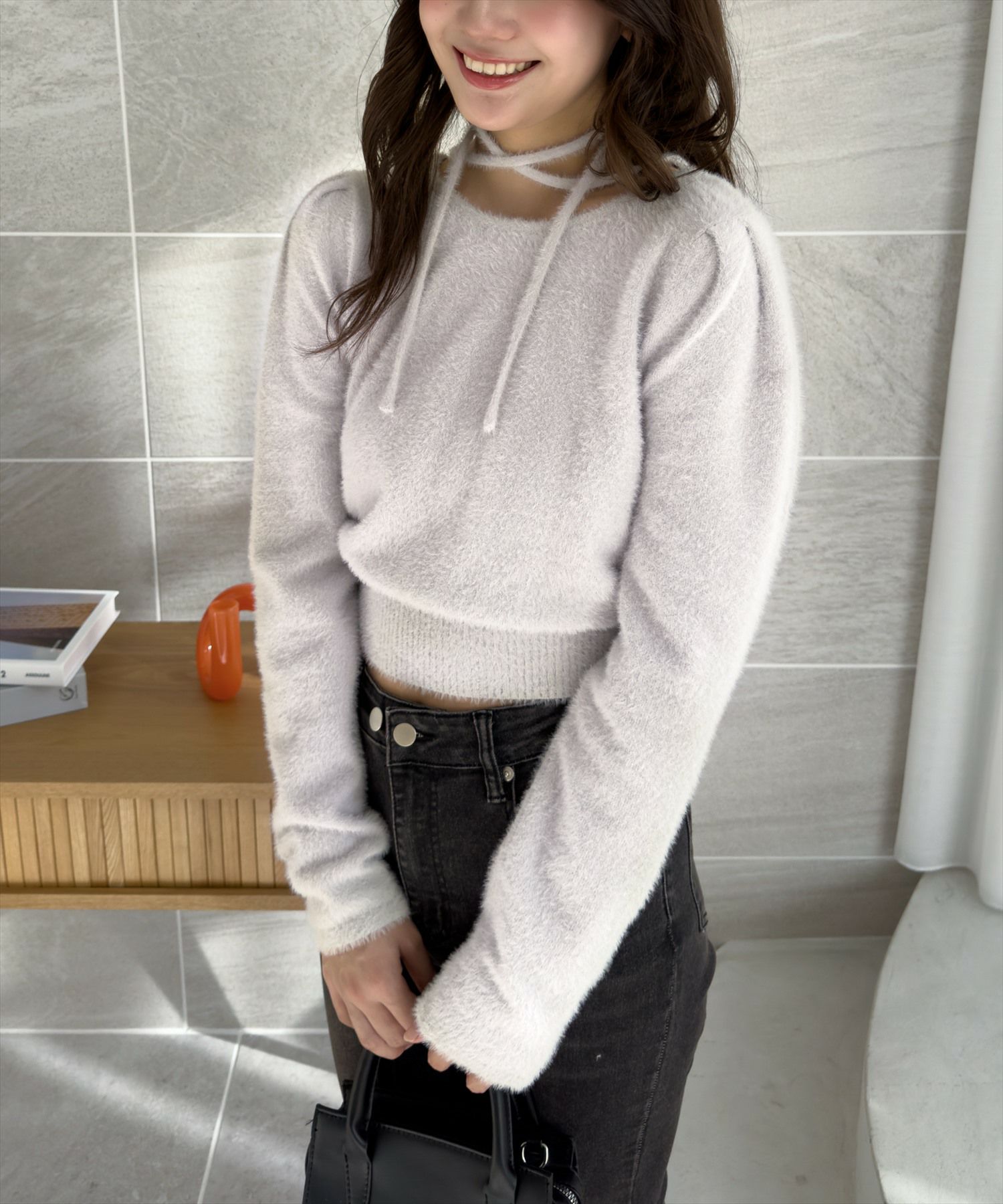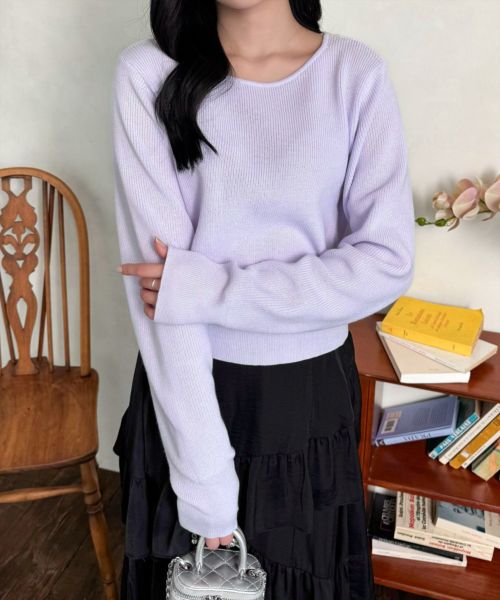CLEAR BASIC バックリボンショートフェザーニットトップス[CL8943]