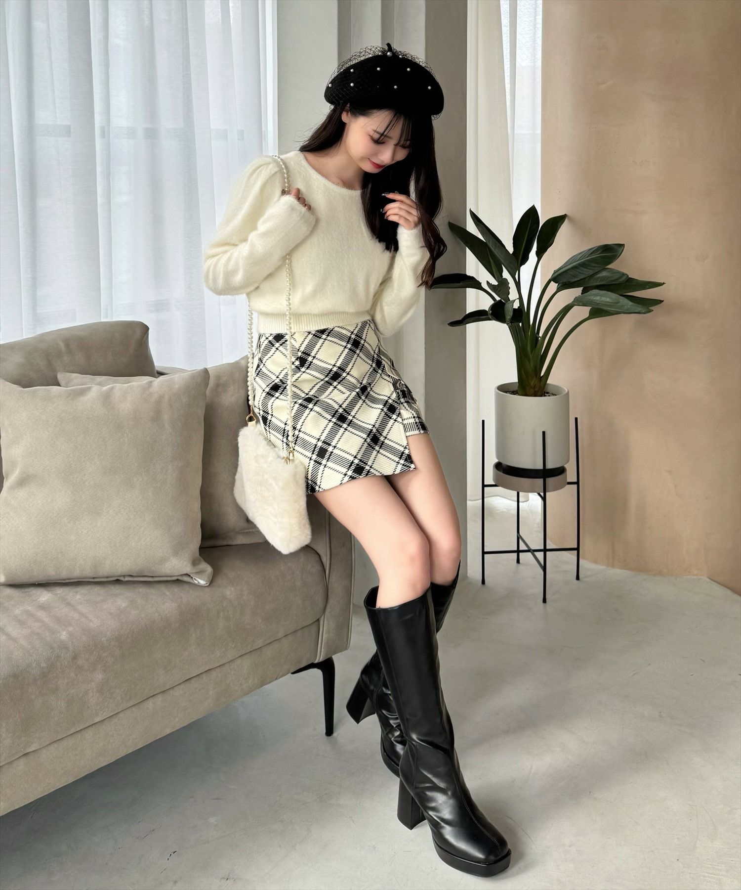 clear ボックスプリーツチェックミニスカート[CL9145]