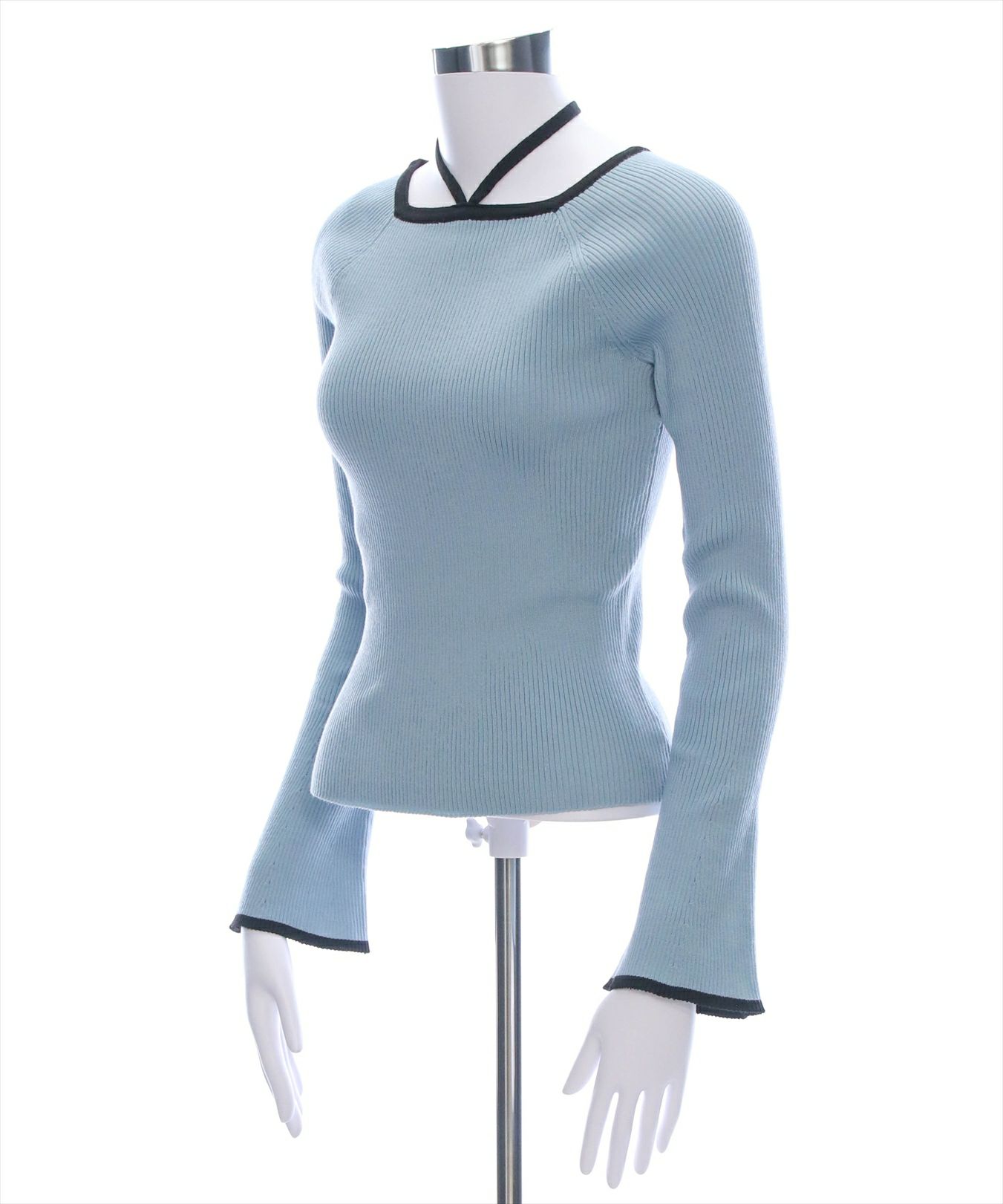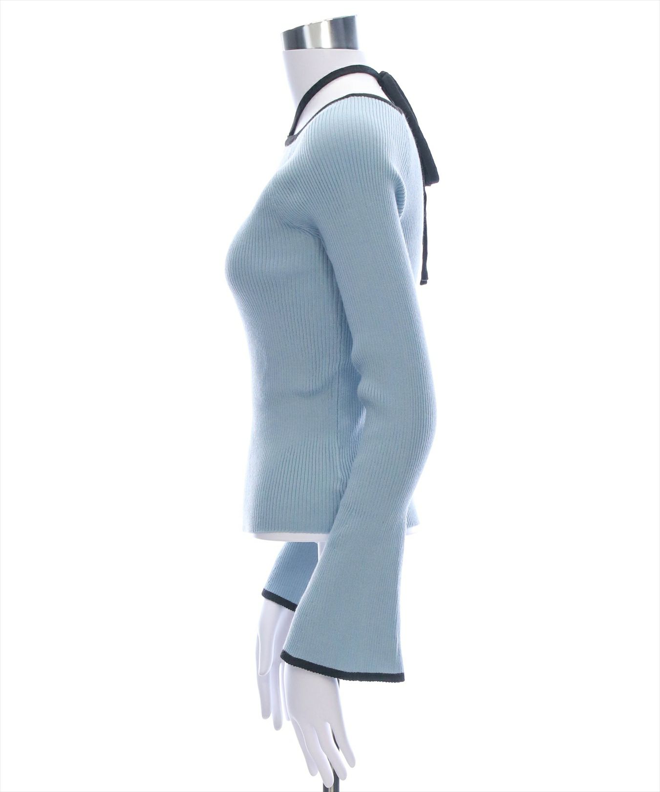 CLEAR BASIC バックリボン配色フレアスリーブニットトップス[CL8953]