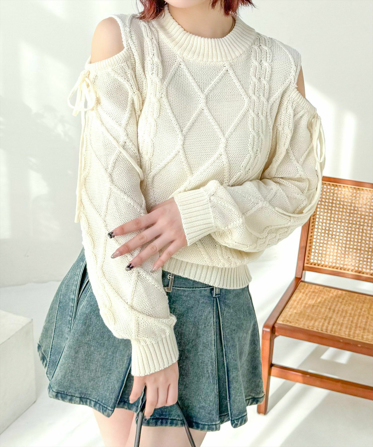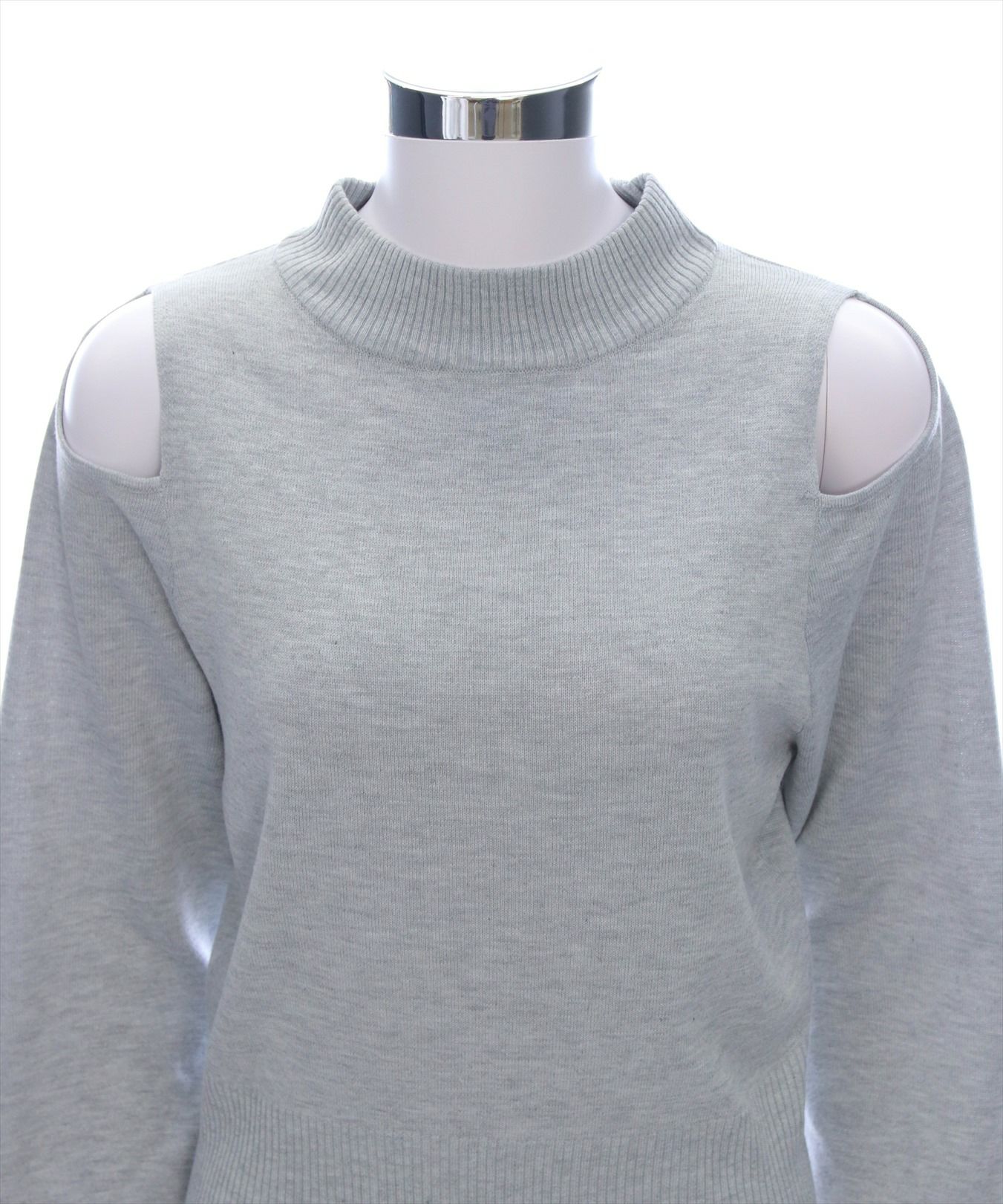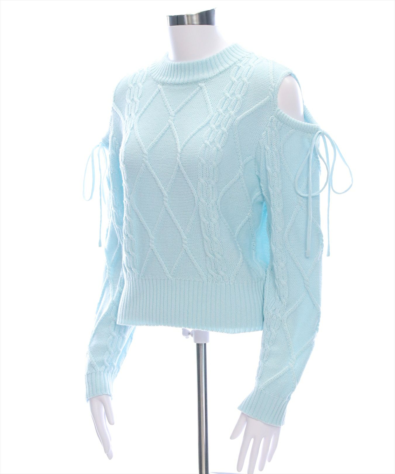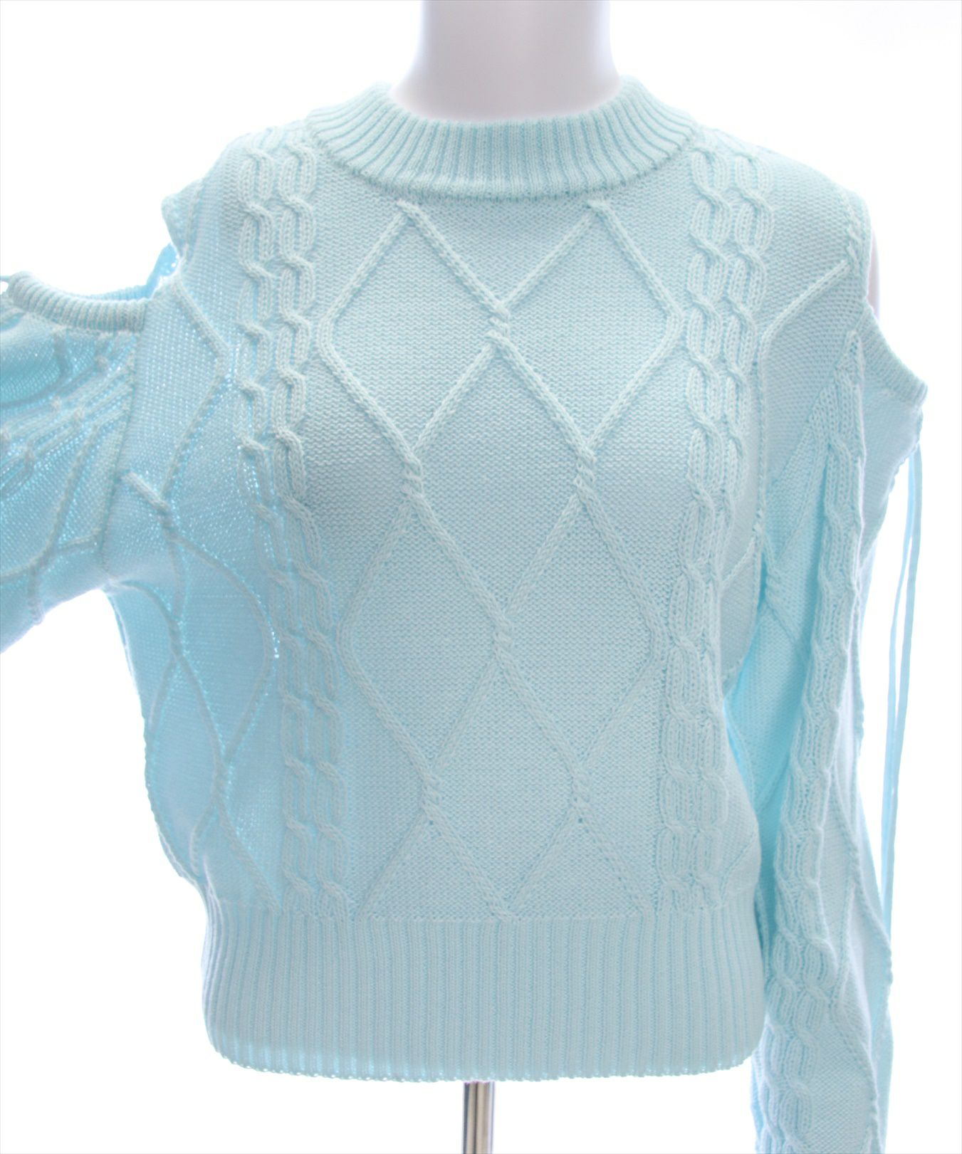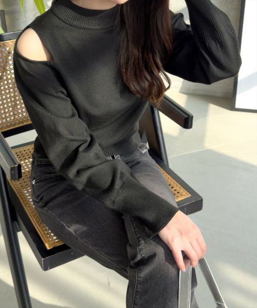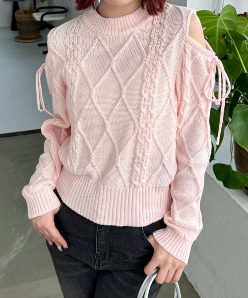 clear オープンショルダーケーブル編みニットトップス[CL8924]