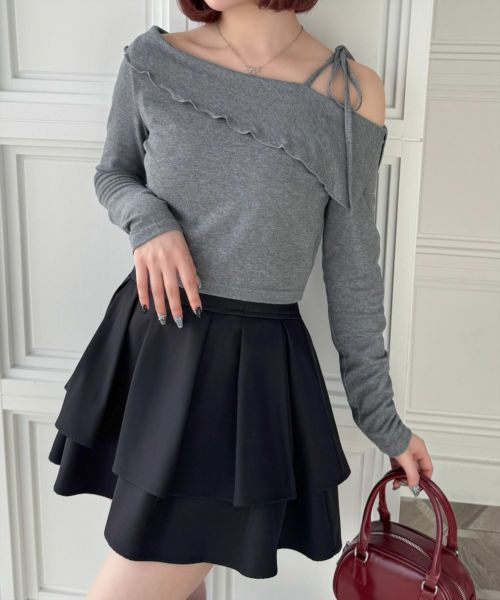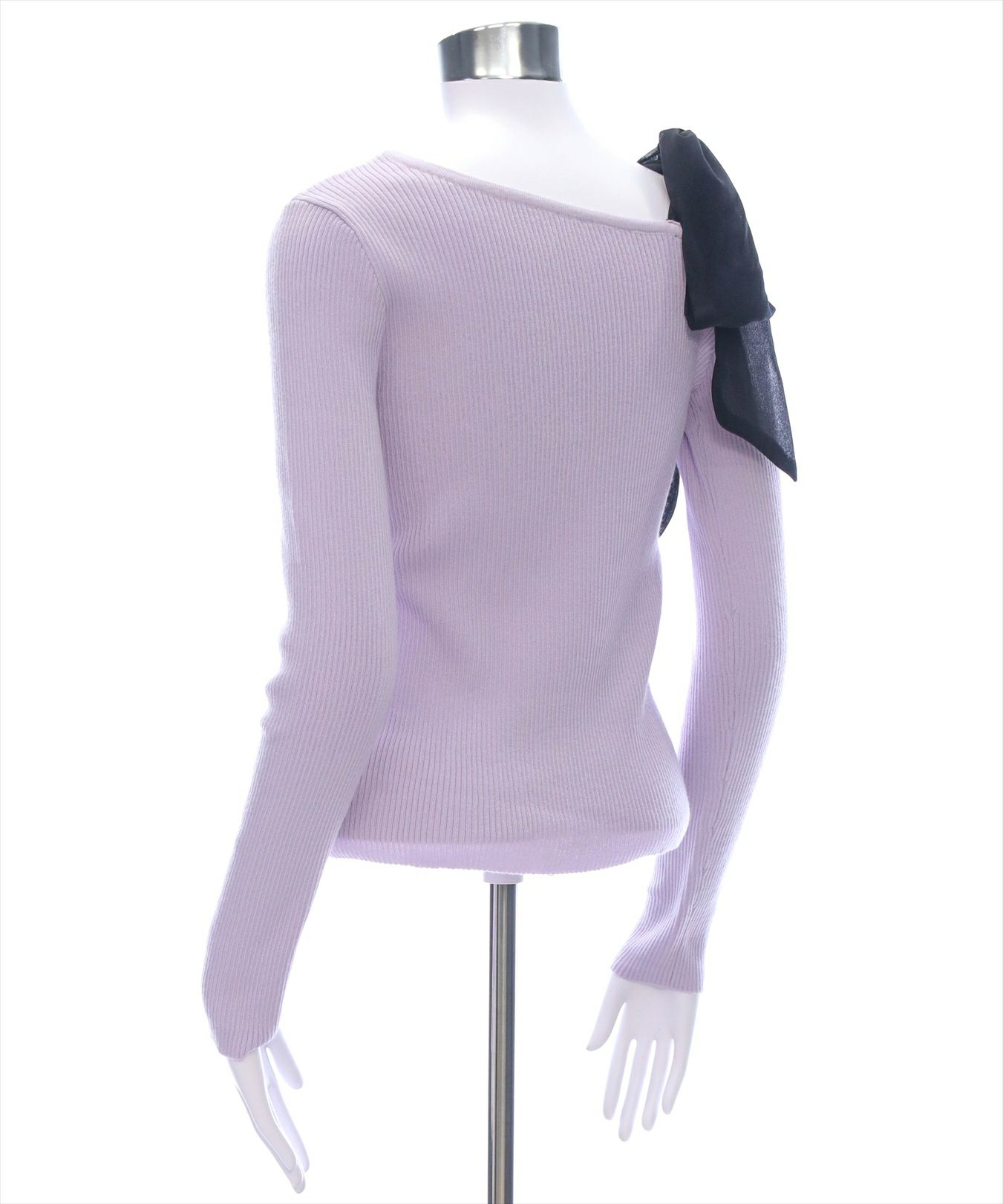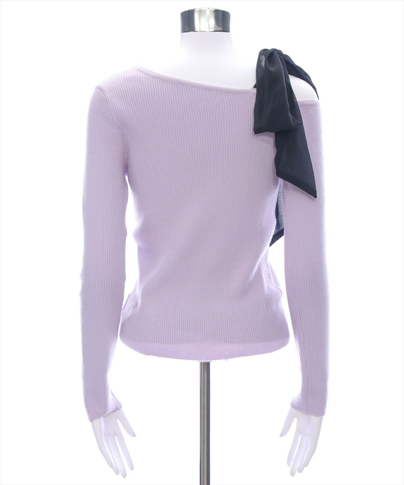 clear サイドドロスト肩リボンワンショルニットトップス[CL8971]