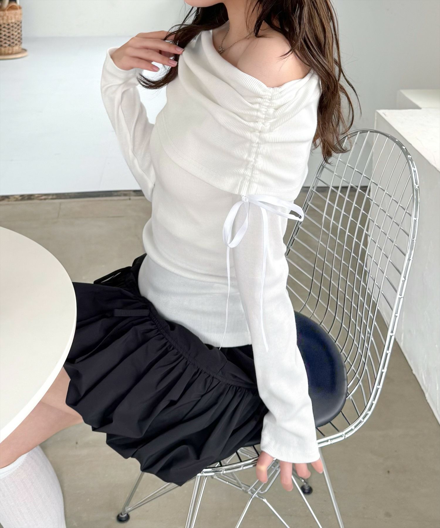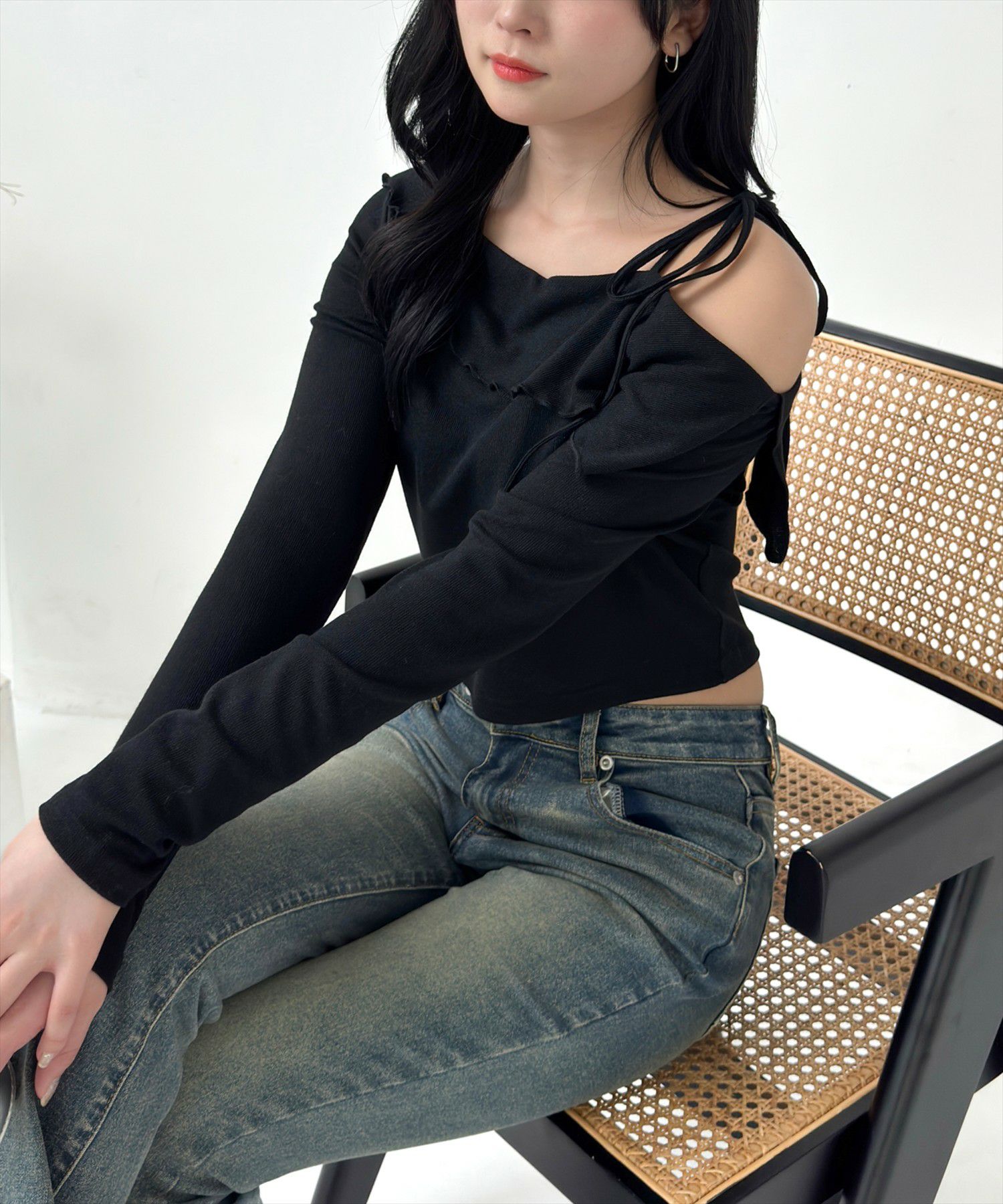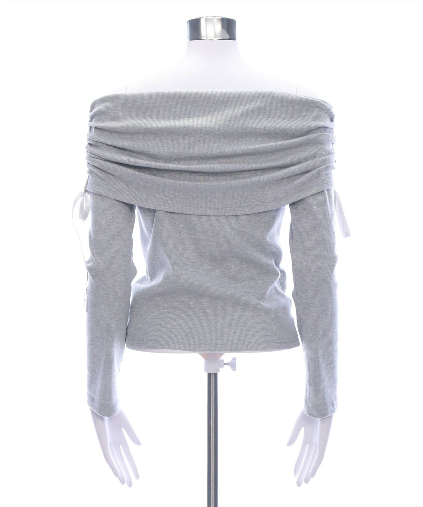 clear サイドドロスト肩リボンワンショルニットトップス[CL8971]