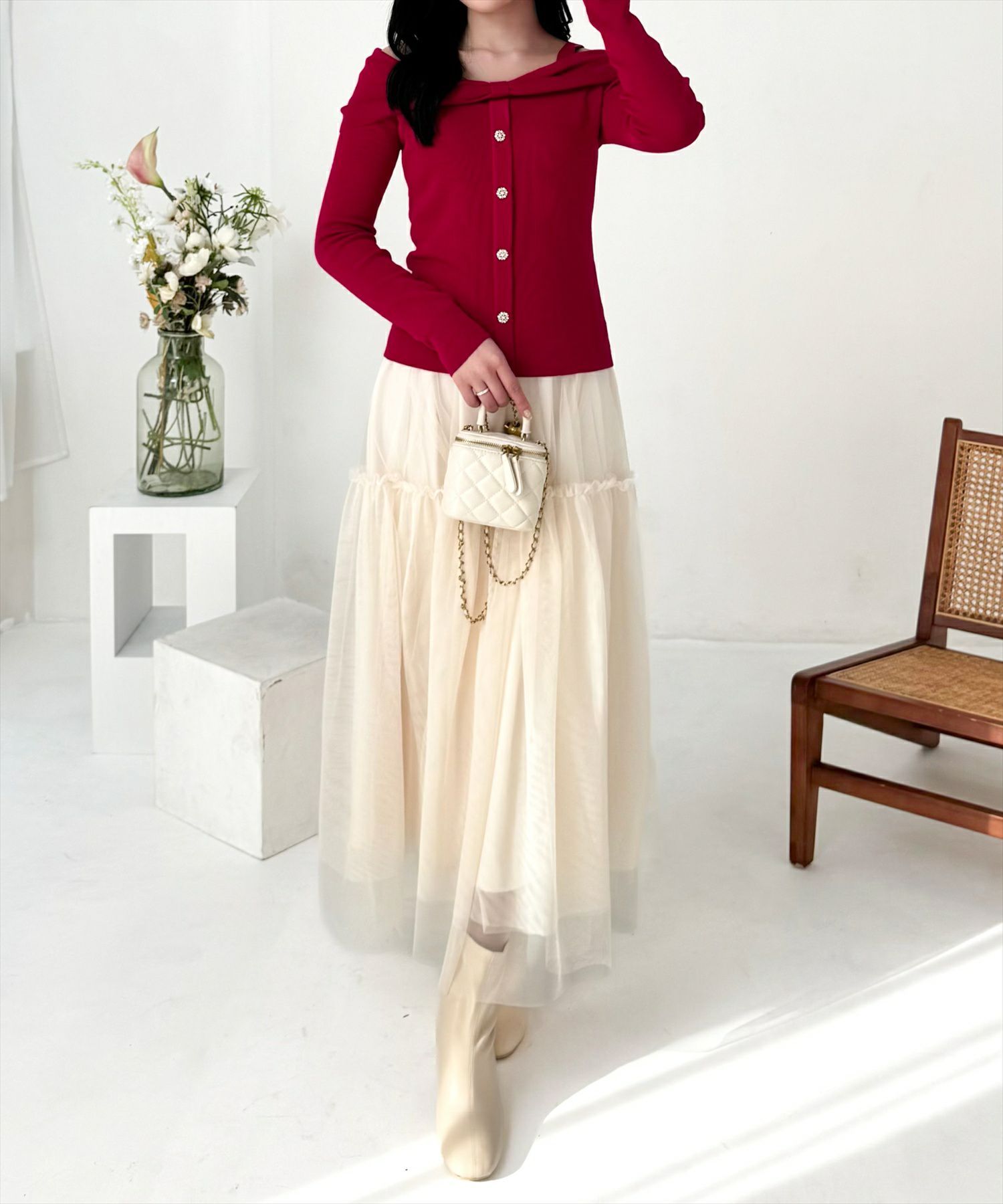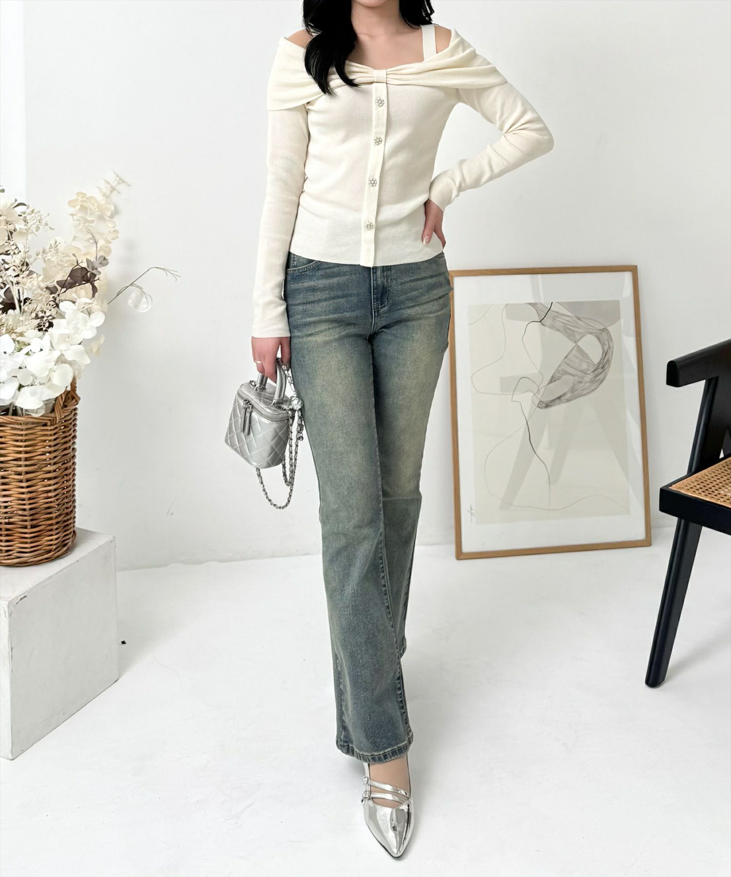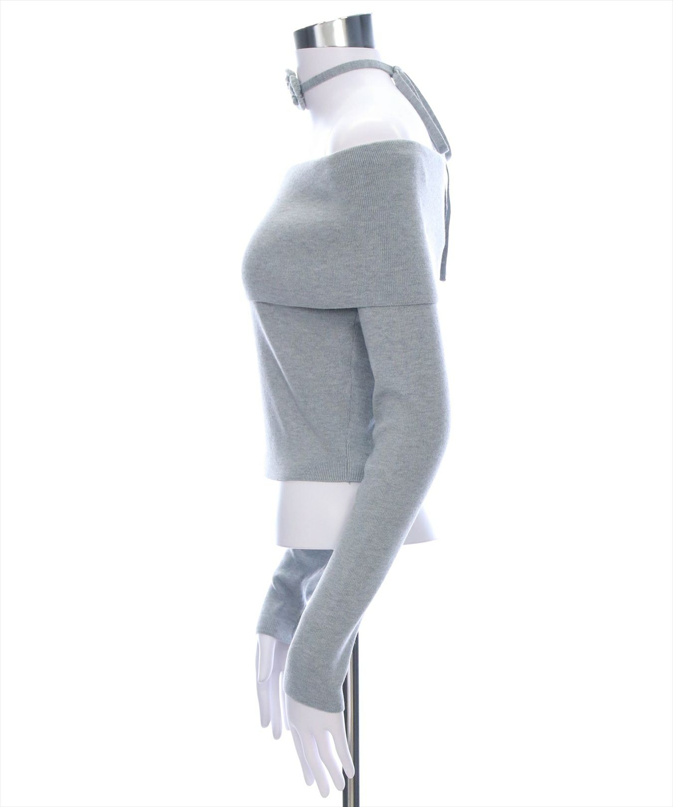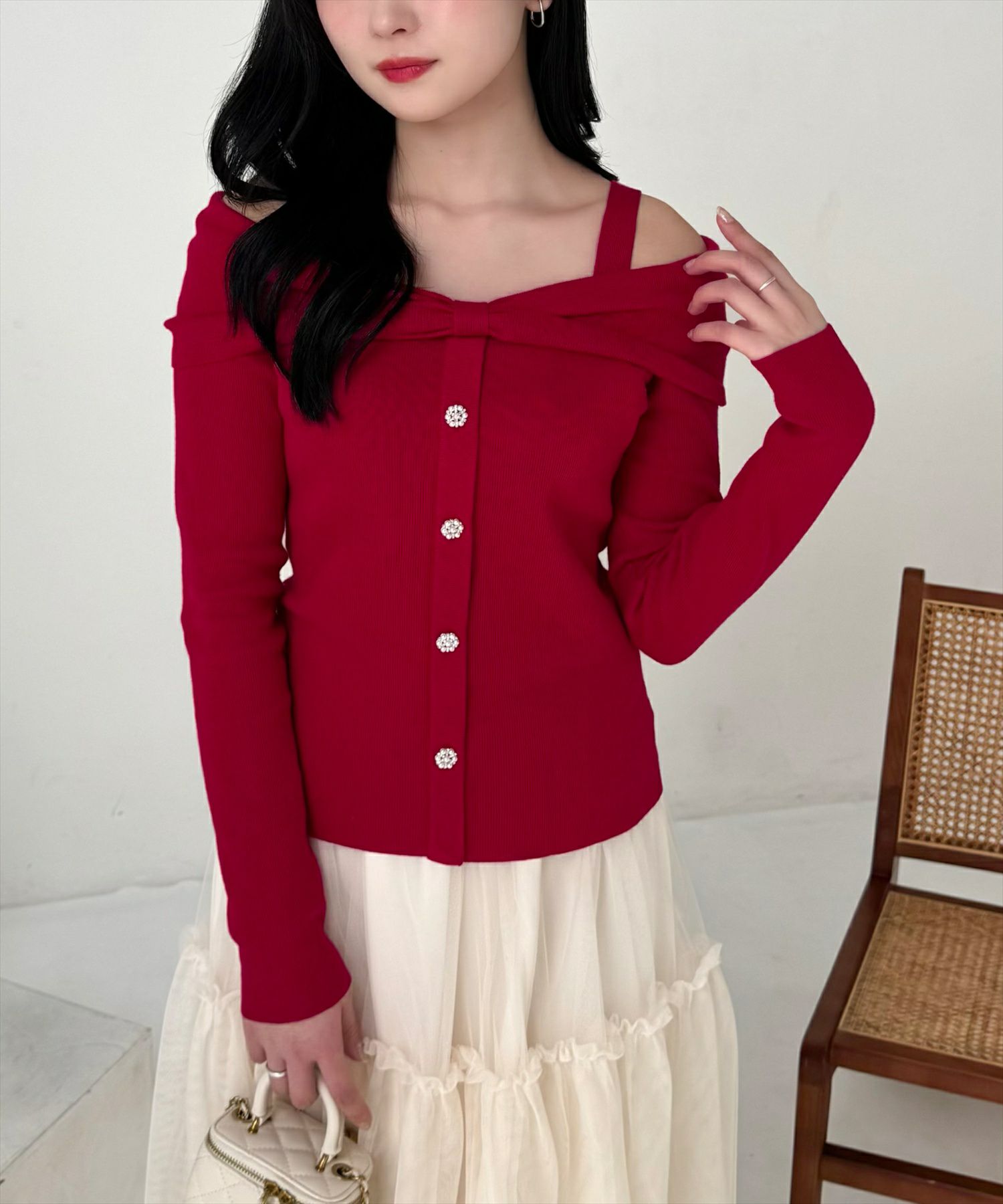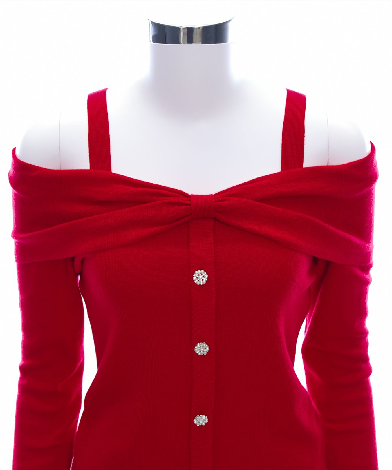 clear ビジューボタンリボンデザインオフショルニット[CL9077]