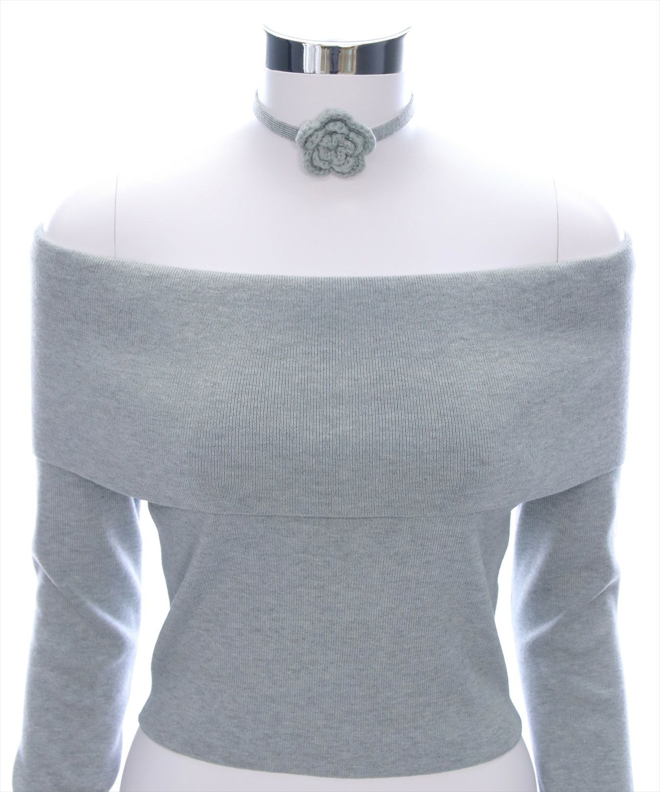 clear バラモチーフ付きオフショルニットトップス[CL8945]