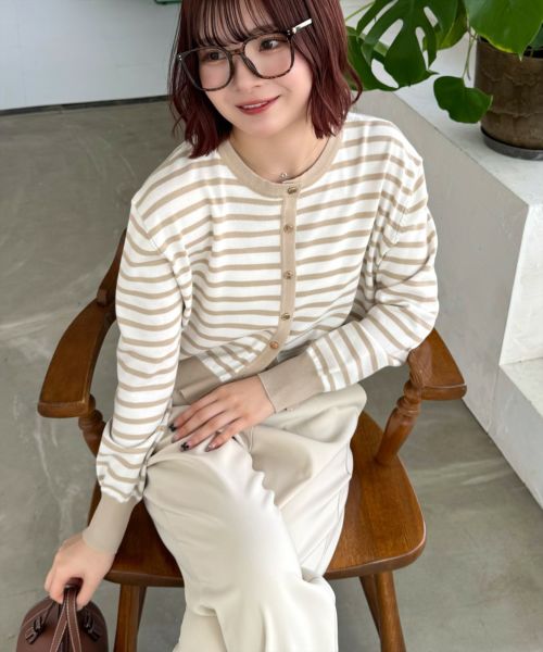 CLEAR BASIC ボーダーニットカーディガン[CL8977]