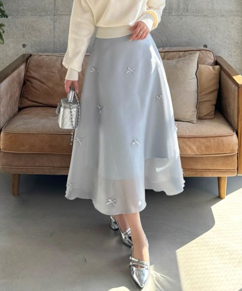 CLEAR BASIC リボン付きチュールフレアスカート[CL8994]