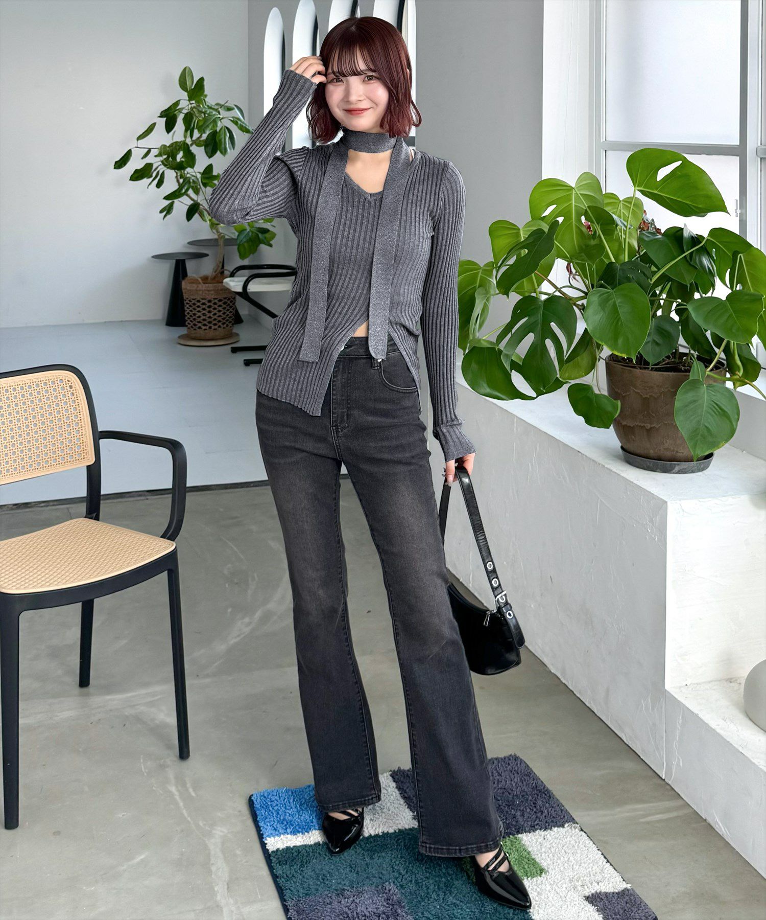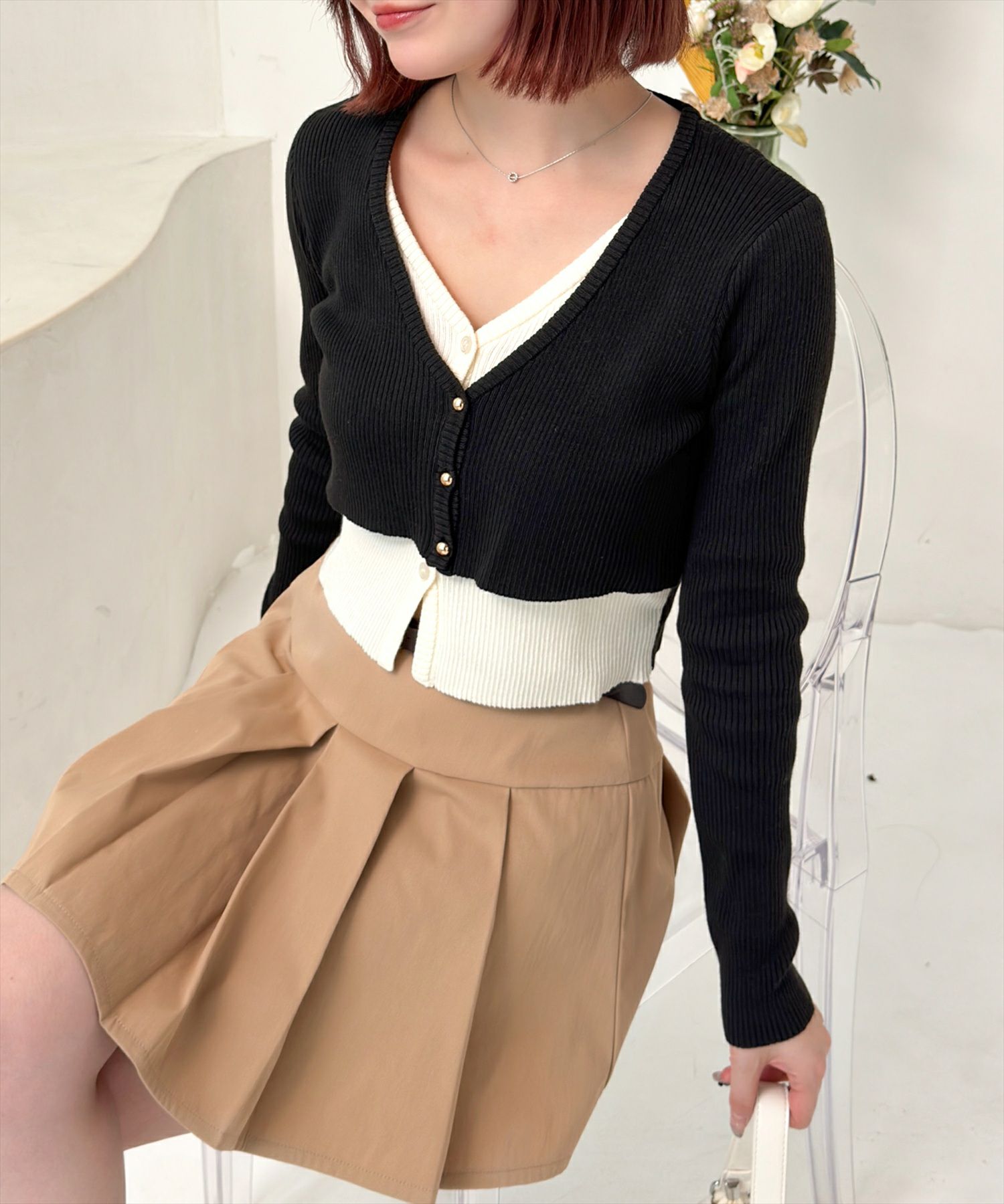 CLEAR BASIC 配色ボウタイニットトップス[CL8978]