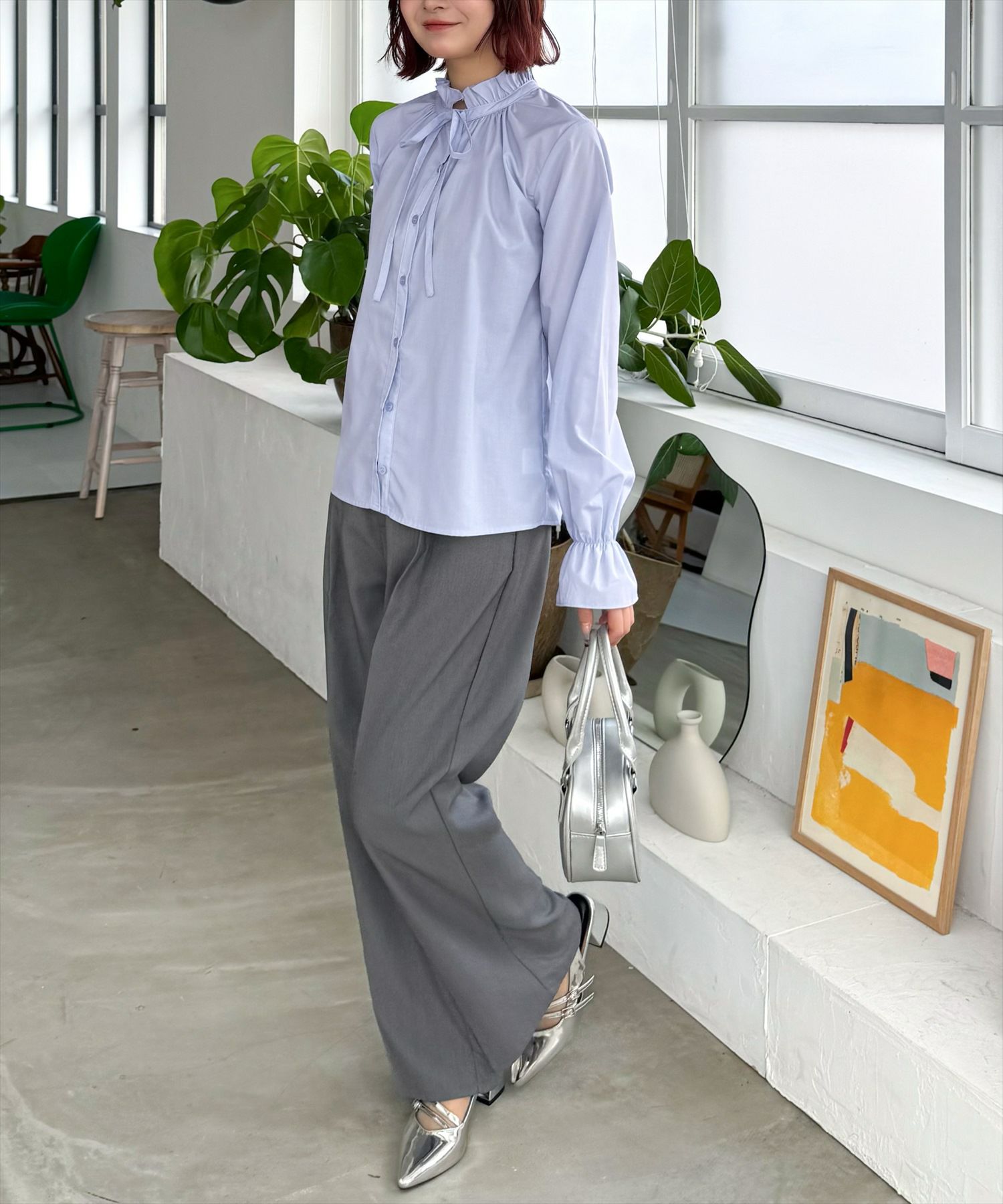 CLEAR BASIC 無地&柄フリルブラウス[CL8963]