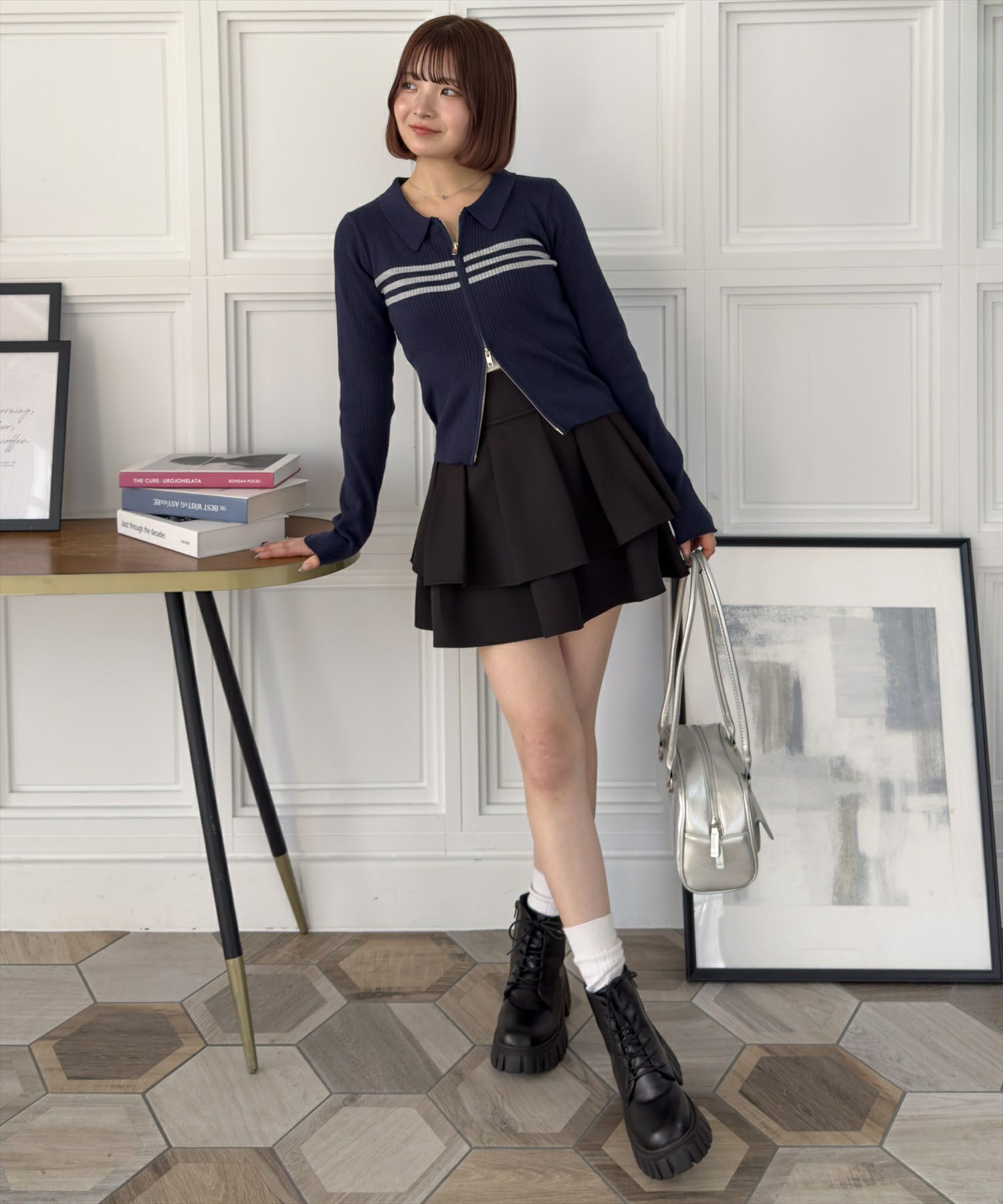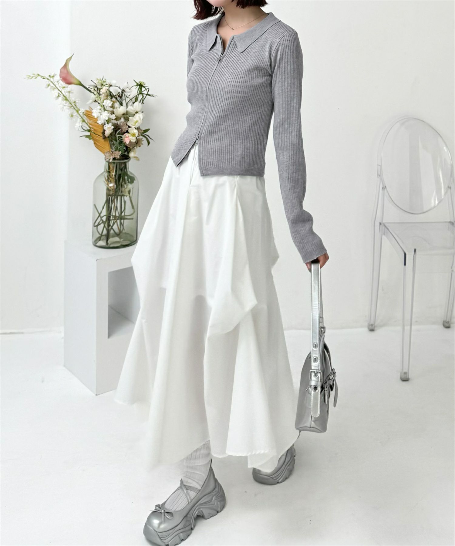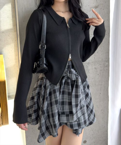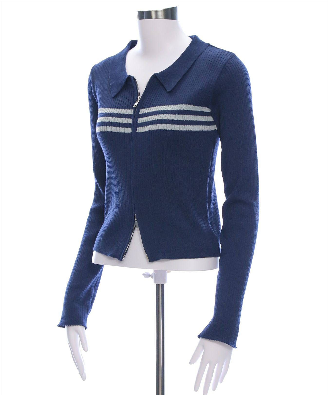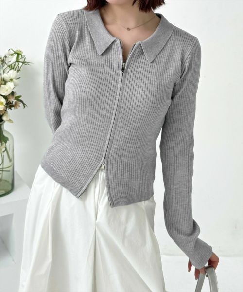 clear ダブルジップ長袖ニットトップス[CL9011]