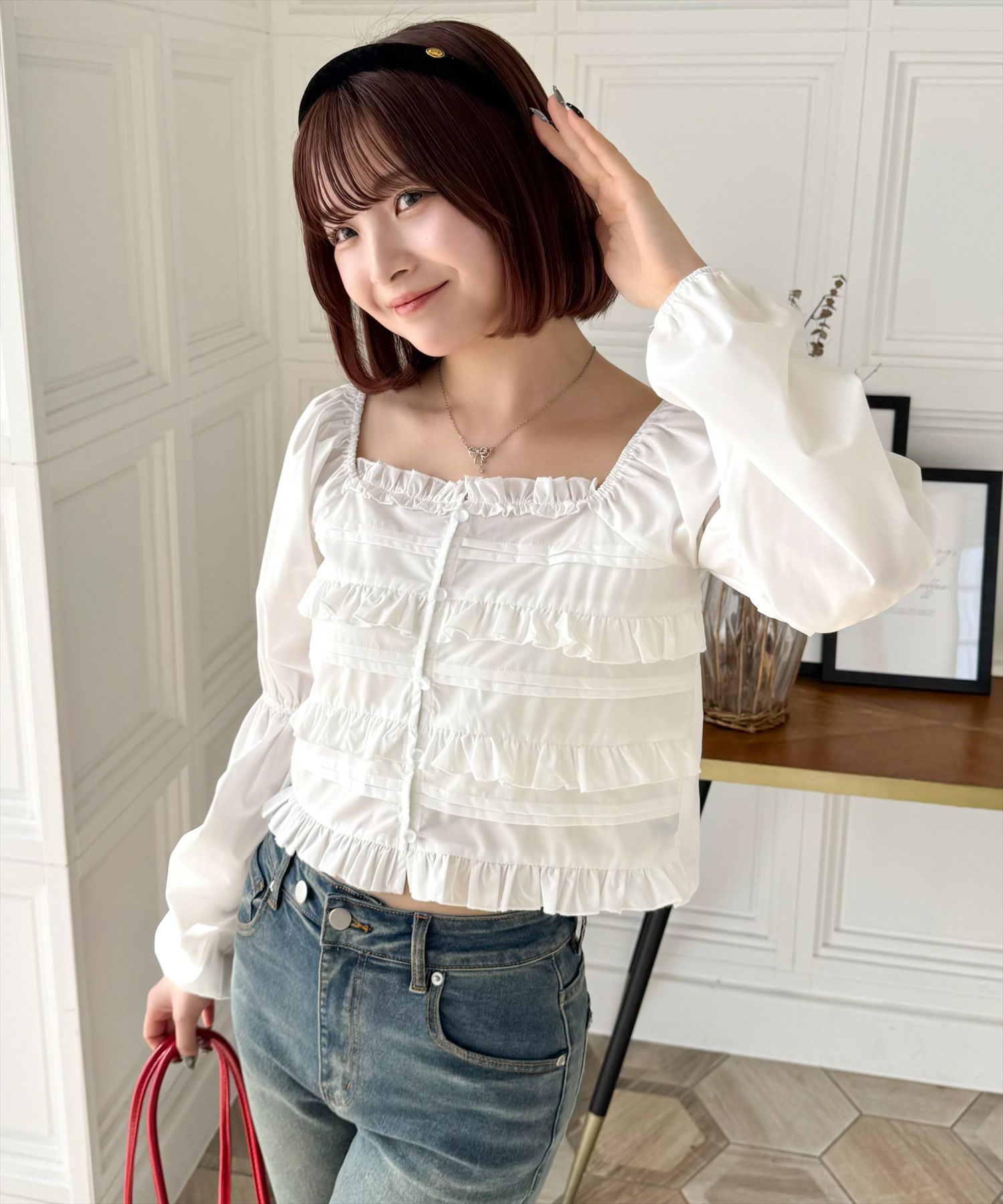 clear フロントフリルスクエアネックブラウス[CL8947]