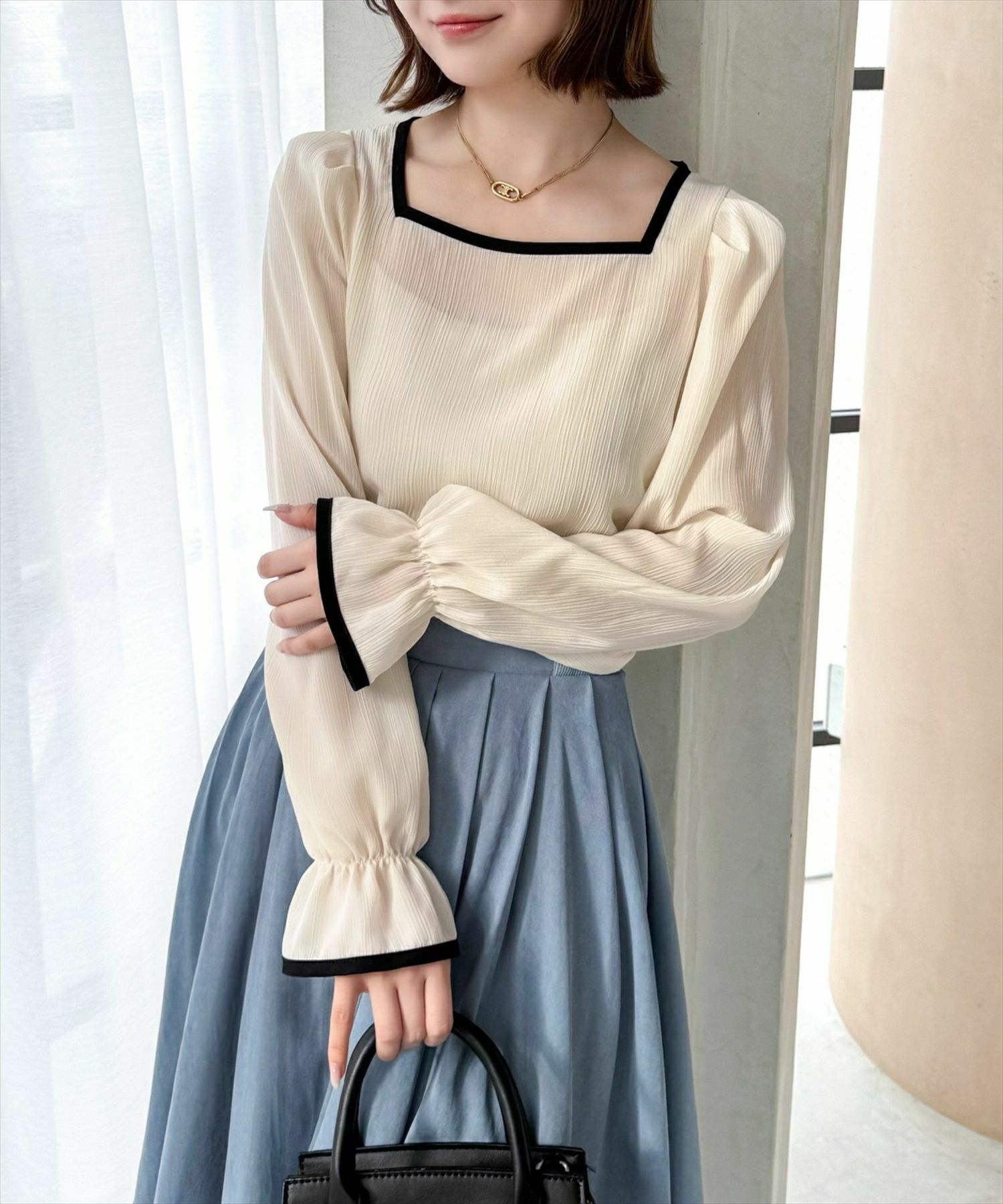 CLEAR BASIC 配色キャンディースリーブ長袖ブラウス[CL8952]