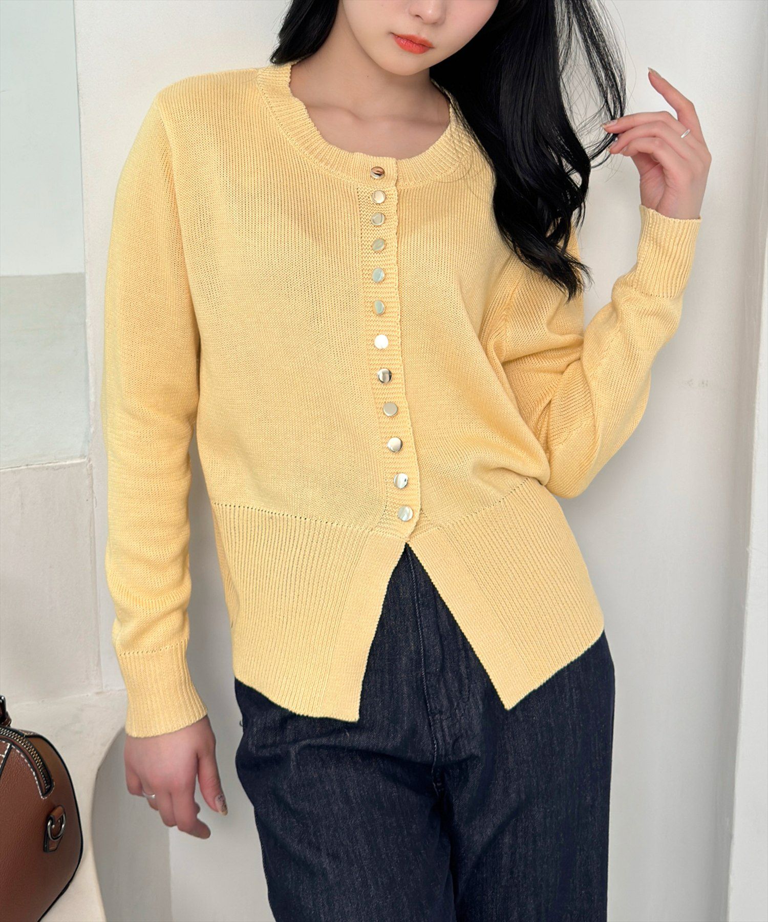 CLEAR BASIC クルーネック裾スリットニットカーディガン[CL8976]