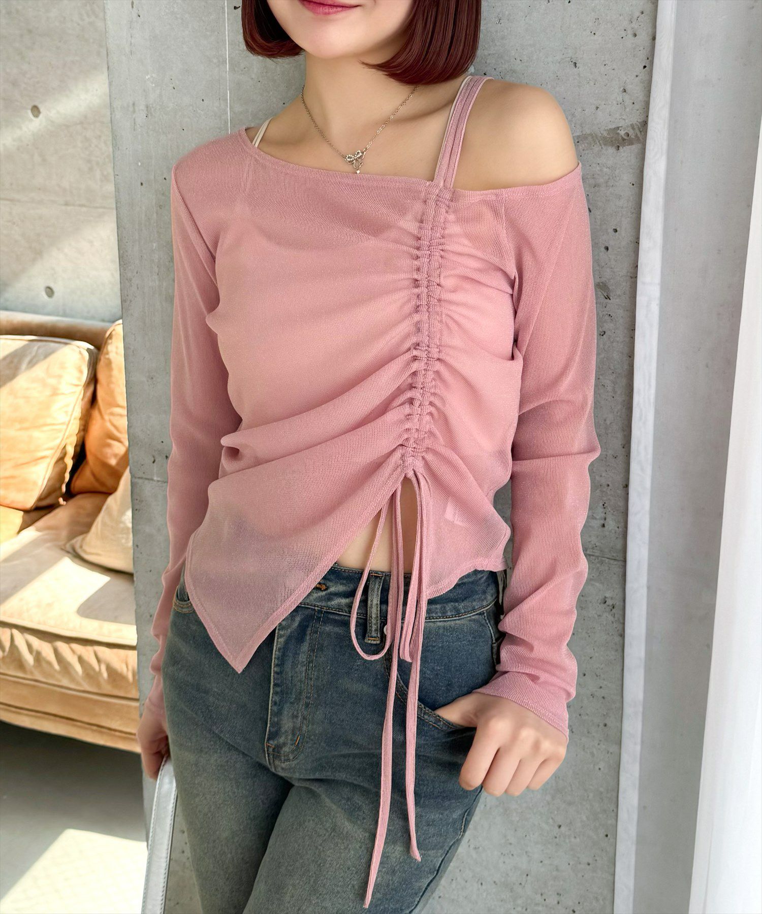 clear サイドドロストワンショルシアーカットソートップス[CL8917]