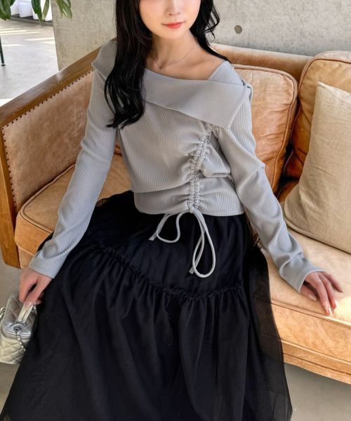 clear フリルオフショルシャーリングブラウス[CL8927]
