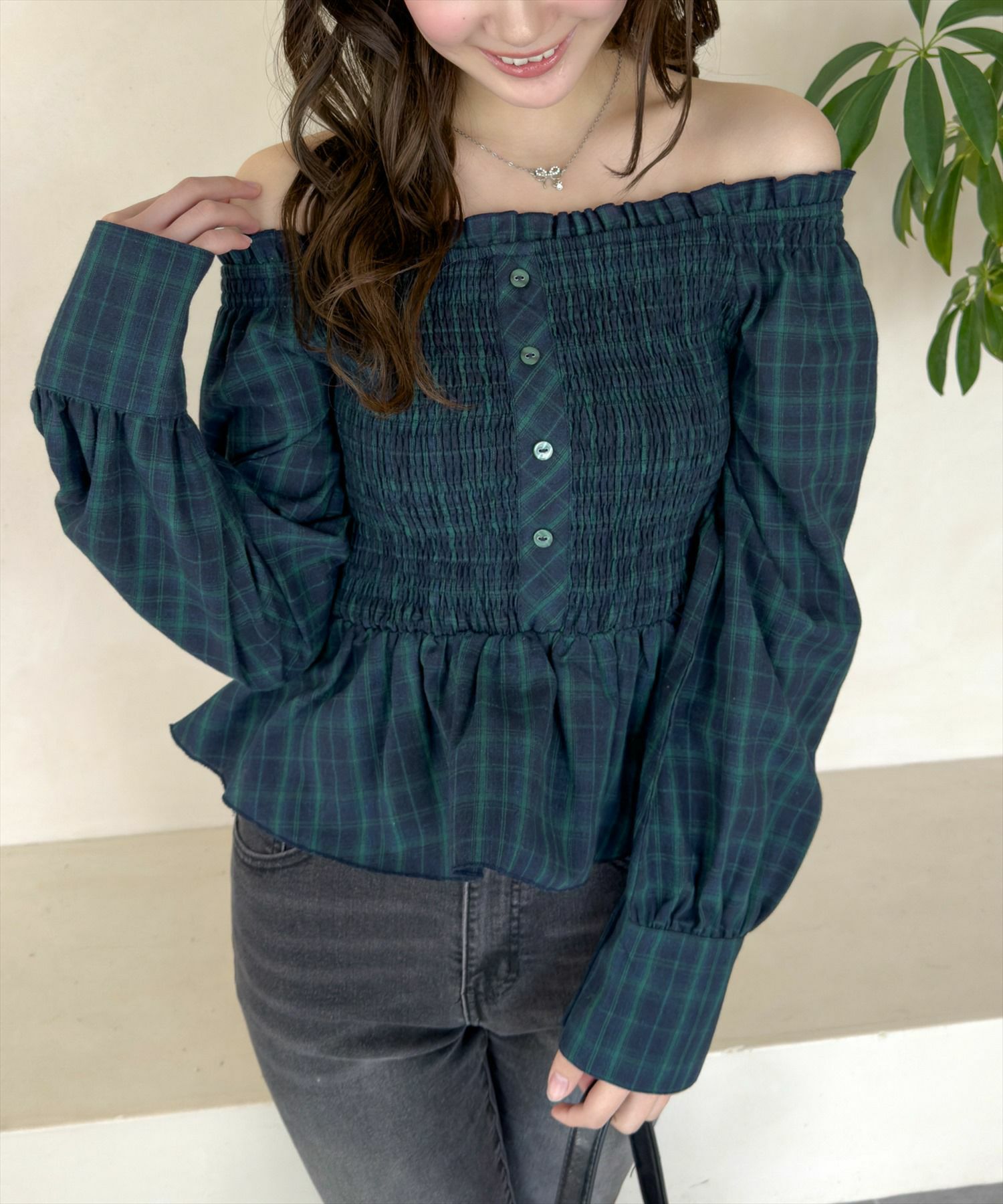clear 2wayチェックペプラムブラウス[CL9018]