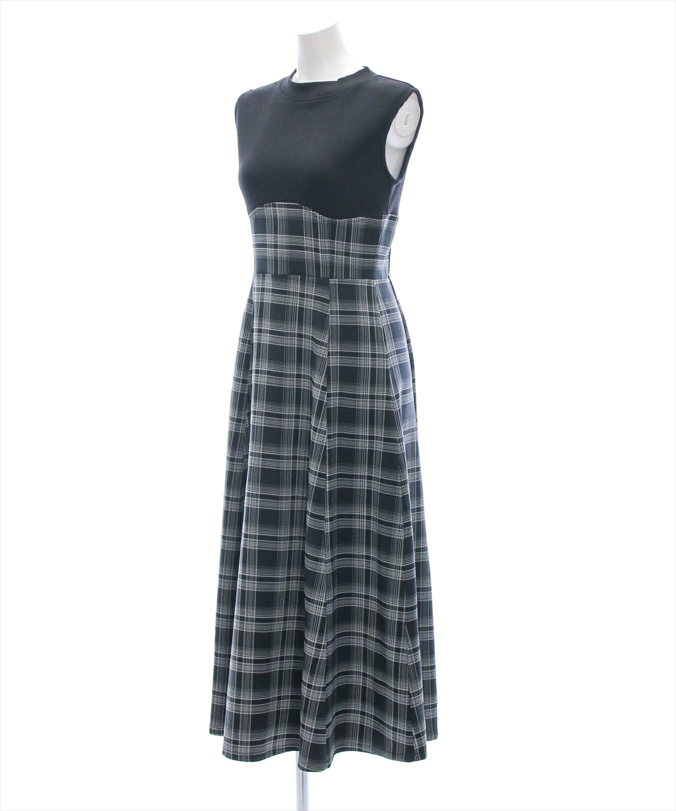 4. CLEAR BASIC チェック柄布帛ドッキングノースリーブワンピース[CL8948]