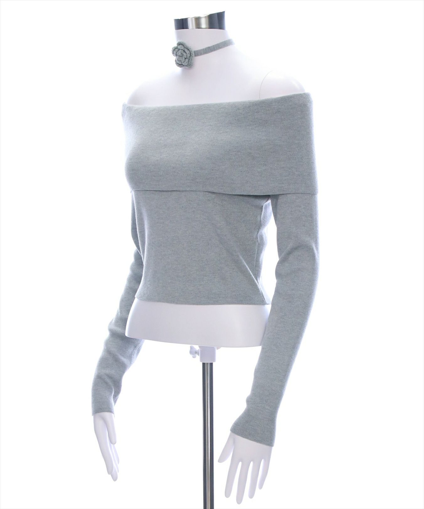 5. clear バラモチーフ付きオフショルニットトップス[CL8945]