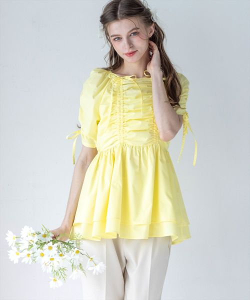 CLEAR BASIC ドロストリボンペプラムブラウス[CL9122/2]
