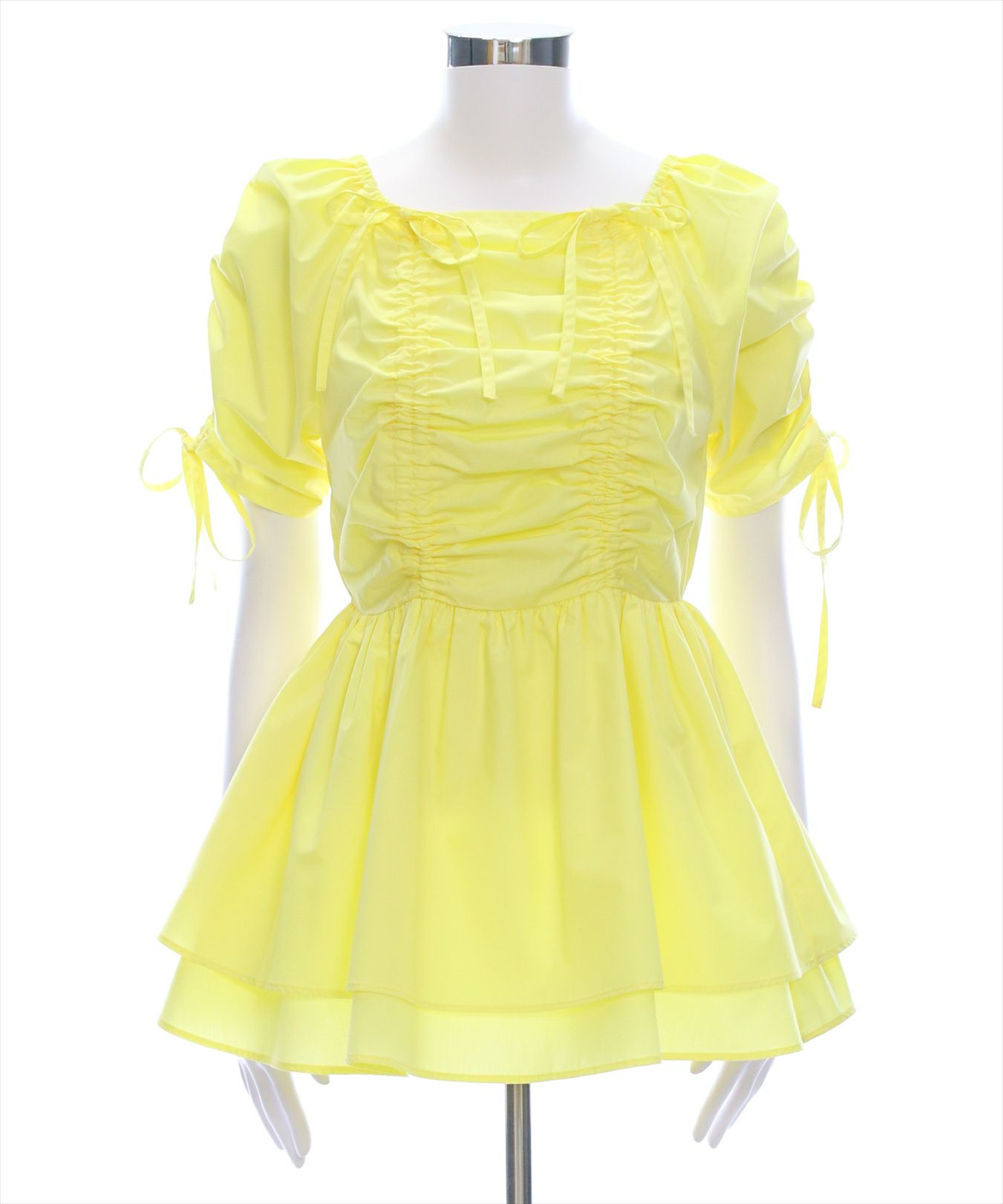 トレンド感のあるドロストやリボンがたくさんほどこされたブラウスです。シンプルで着回しやすい無地と、トレンド感のある花柄とカラー展開も豊富です!ウエストの切替が高めなので、自然とスタイルアップが叶います♪