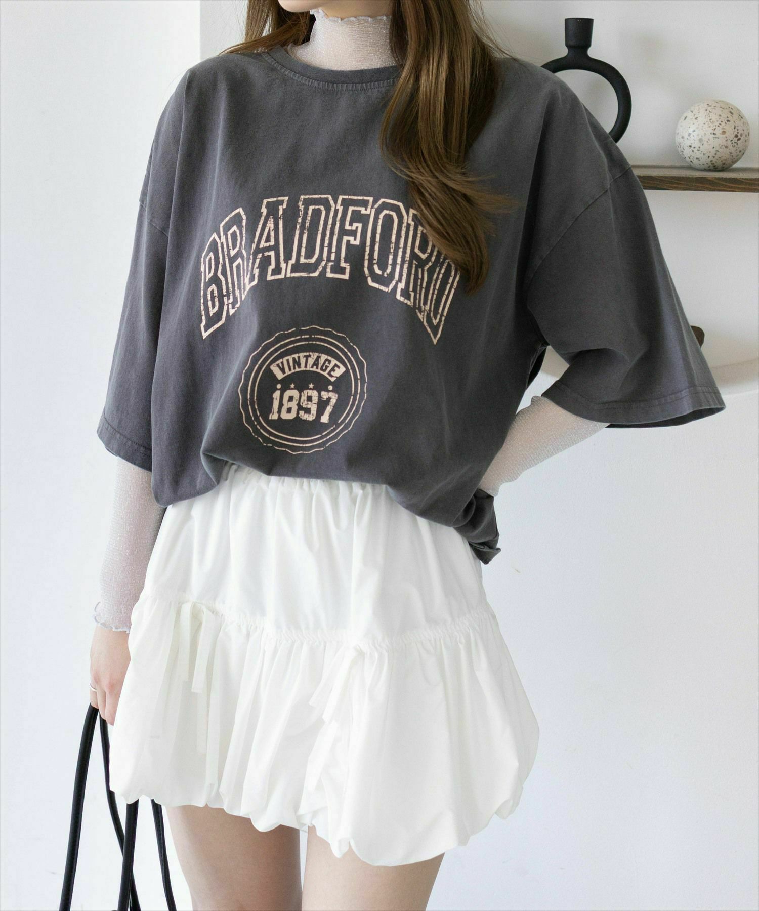 オシャレ感のある!オーバーサイズケミカル加工ロゴTシャツ【デザイン】ケミカル加工により、ヴィンテージライクに仕上がったTシャツです。オーバーサイズなので、ゆるっとご着用いただけます♪シンプルなロゴデザインなので、挑戦していただきやすいです!【コーディネート】デニムパンツやカーゴパンツ合わせで、ストリートコーデに仕上がります!ミニスカート合わせで、裾からスカートを見せていただくのもオススメです◎