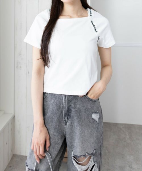 一枚でキマる、ちょうどいい存在感!ロゴテープラグランTシャツ【デザイン】すっきりとしたスクエアネックが印象的なカットソー。程よく身体にフィットするシルエットで、ラフなのに女性らしい抜け感を演出。デイリーに使いやすく、1枚あると重宝する万能トップスです◎【コーディネート】ワイドデニムやカーゴパンツに合わせててY2Kカジュアルにも、リネンパンツと合わせてナチュラル系カジュアルコーデにもおすすめです◎