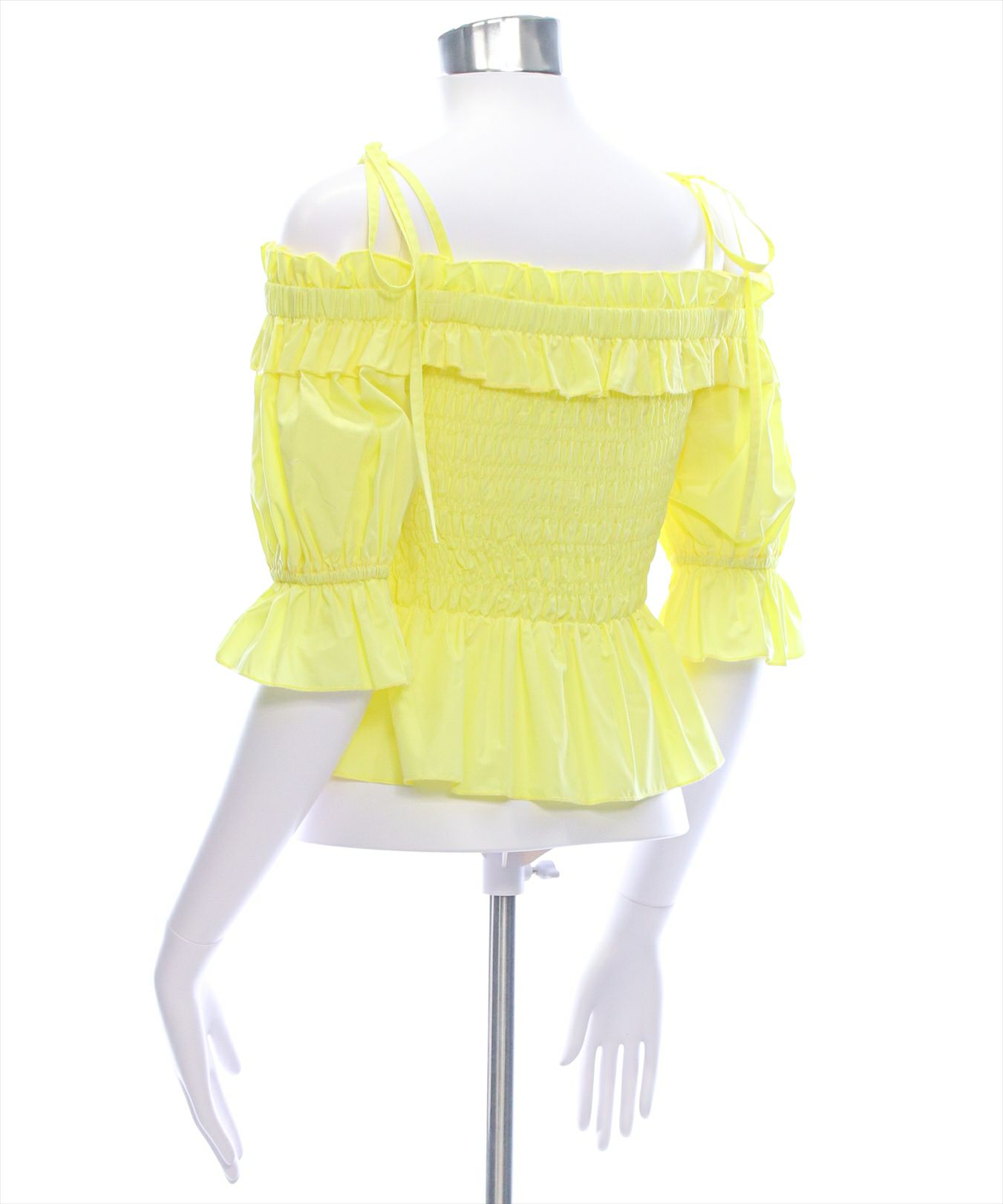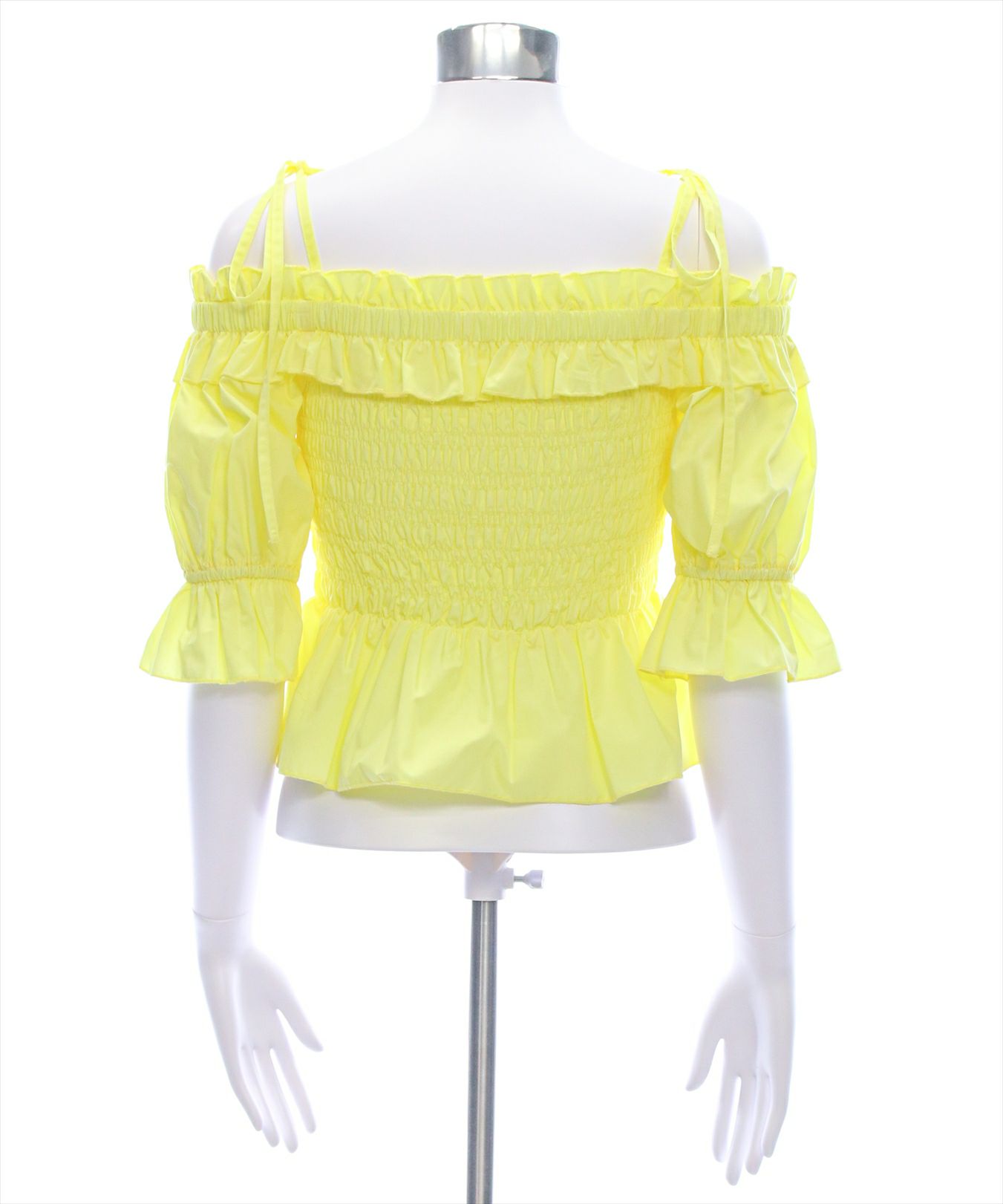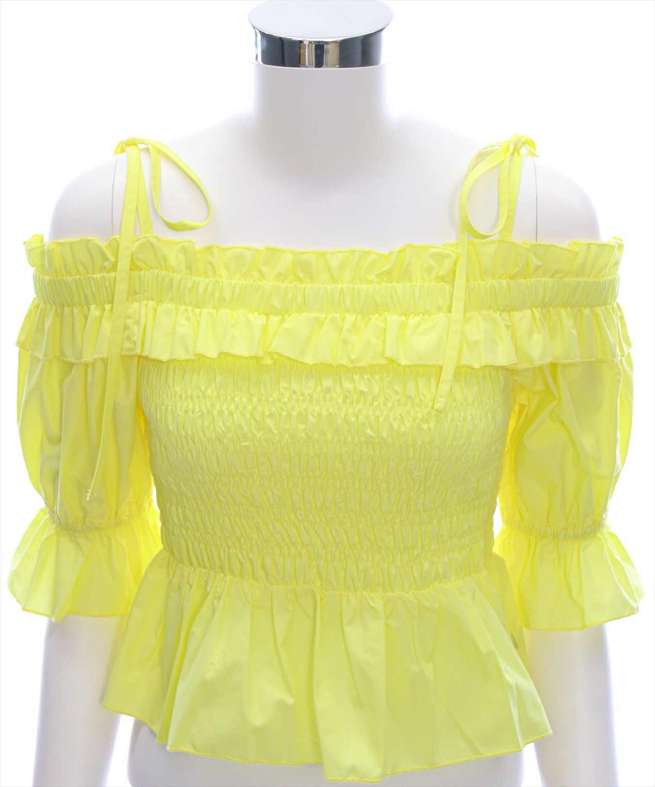華やかな!肩リボンオフショルシャーリング半袖ブラウス【デザイン】オフショル仕様なのでヘルシーな肌見せが叶ブラウスです。肩のリボンは可愛らしいだけでなく、肩紐の長さを調節していただけます!さらにシャーリングにより体にフィットするデザインなので、スタイルアップ効果も抜群です♪【コーディネート】デニムパンツとサンダル合わせで夏らしいコーデに仕上がります!ハイウエストのボトムス合わせで、さらにスタイルアップが叶います◎