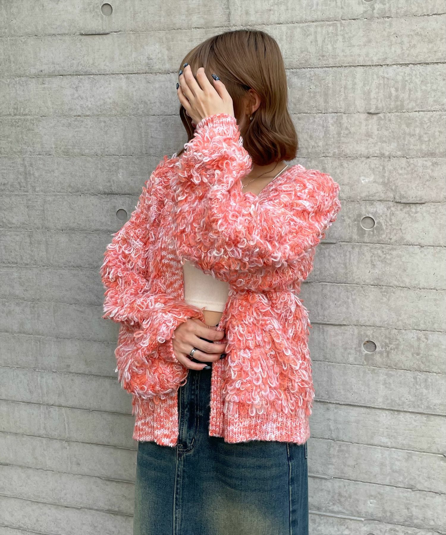 clear ブークレ起毛ニットカーディガン[CL8628]