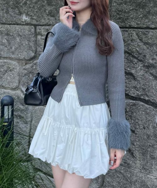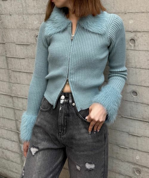 clear ダブルジップ襟袖フェザーリブニットトップス[CL8377]