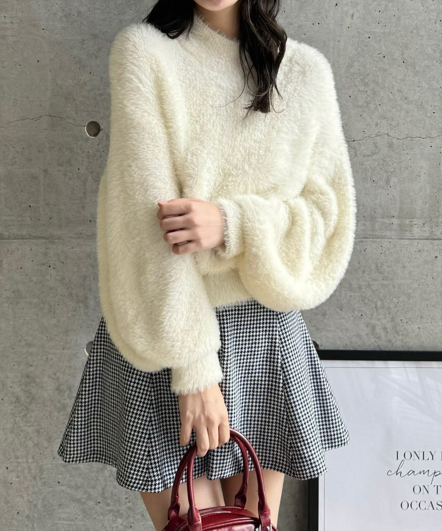 clear ロングフェザー丸首ニットトップス[CL8507]