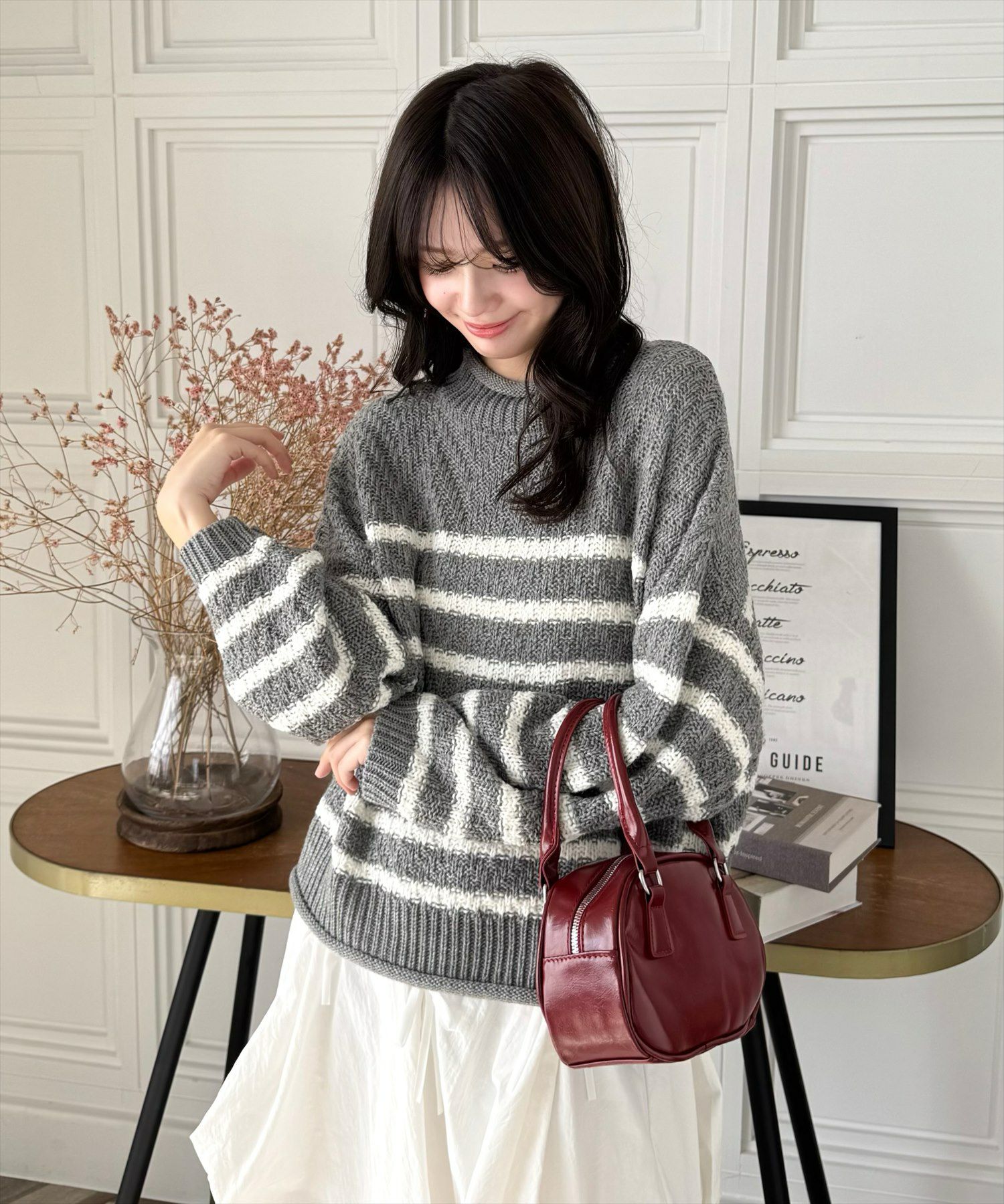 clear チョーカー付きボーダーニットトップス[CL8837]