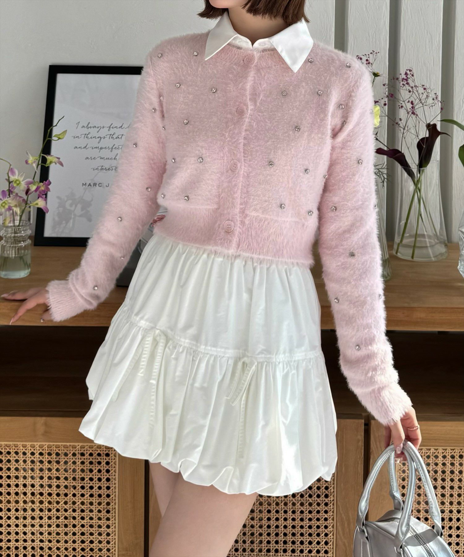clear ラインストーンフェザーニットカーディガン[CL8853]