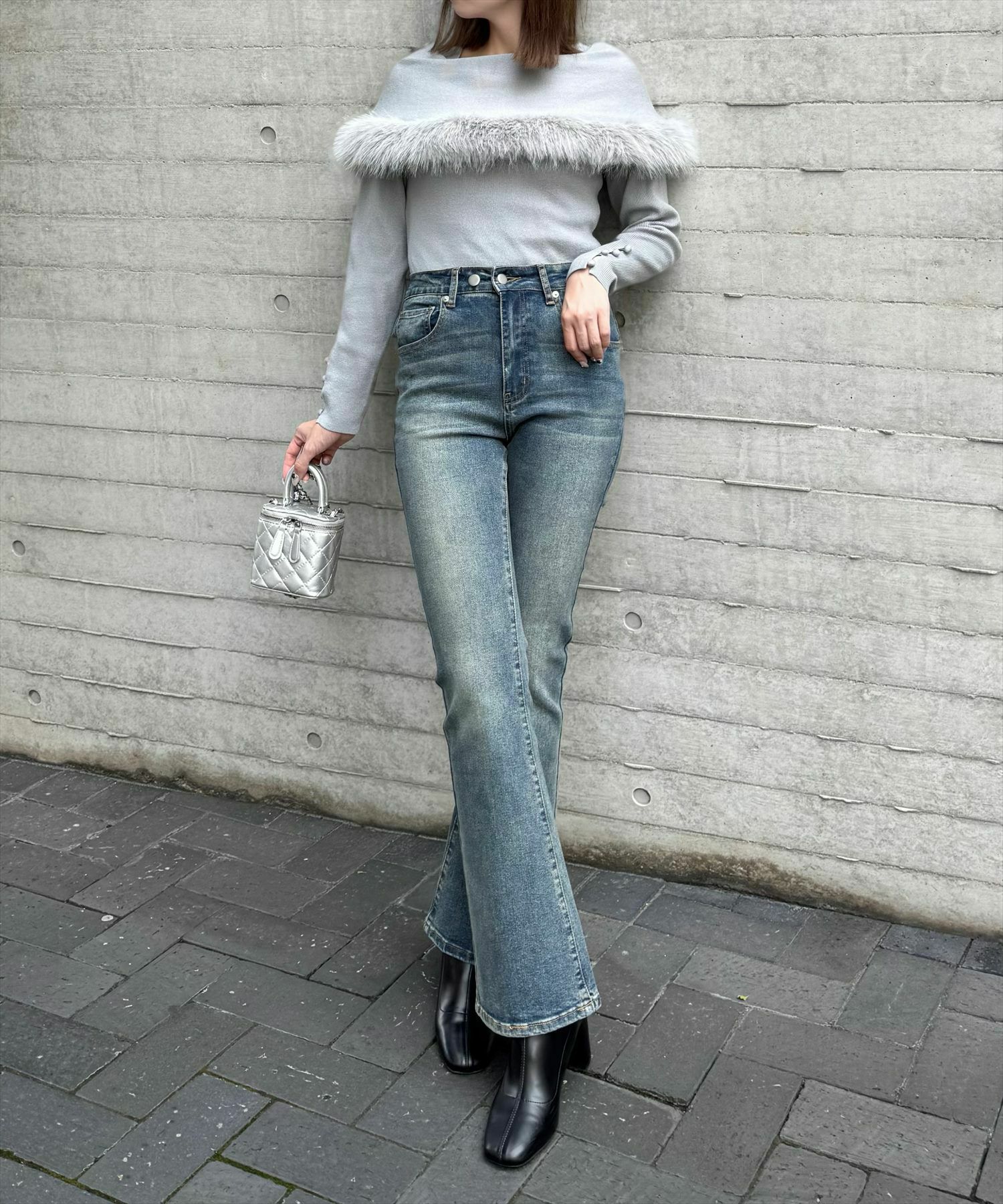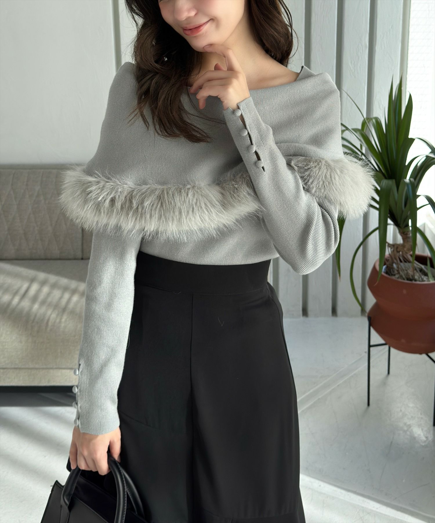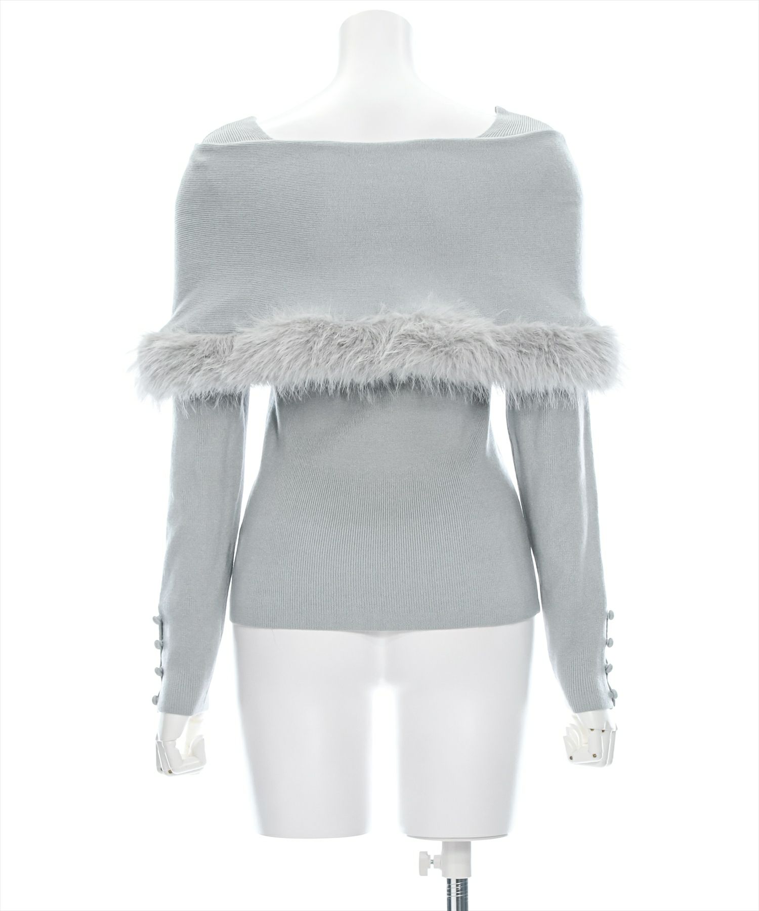 clear 2wayワンショル&ボートネックフェザーニットトップス[CL8535]