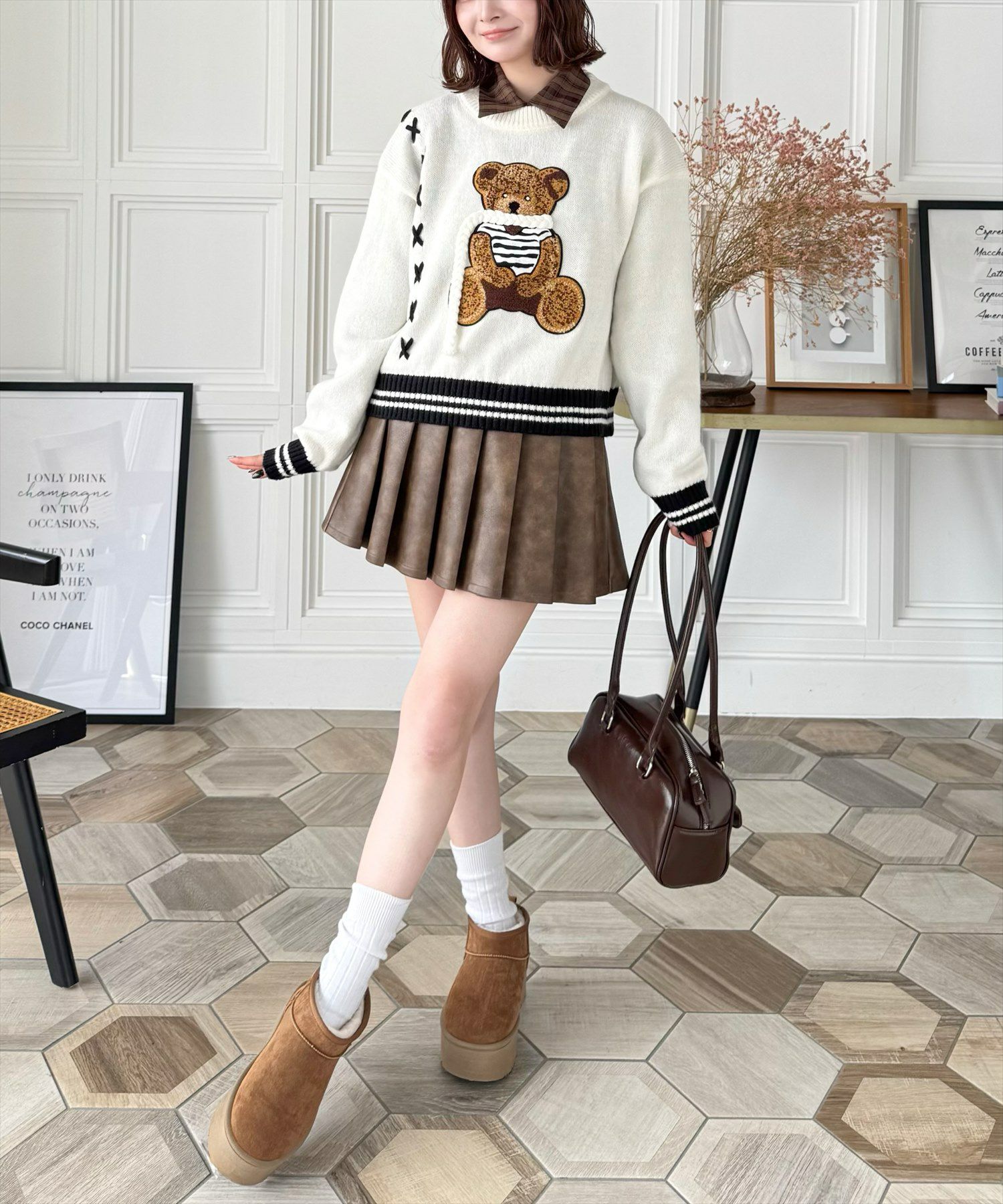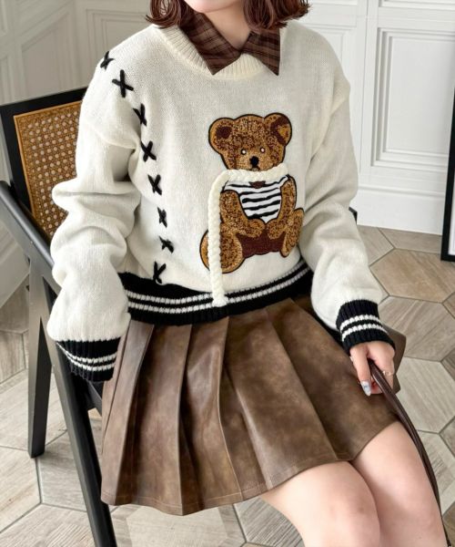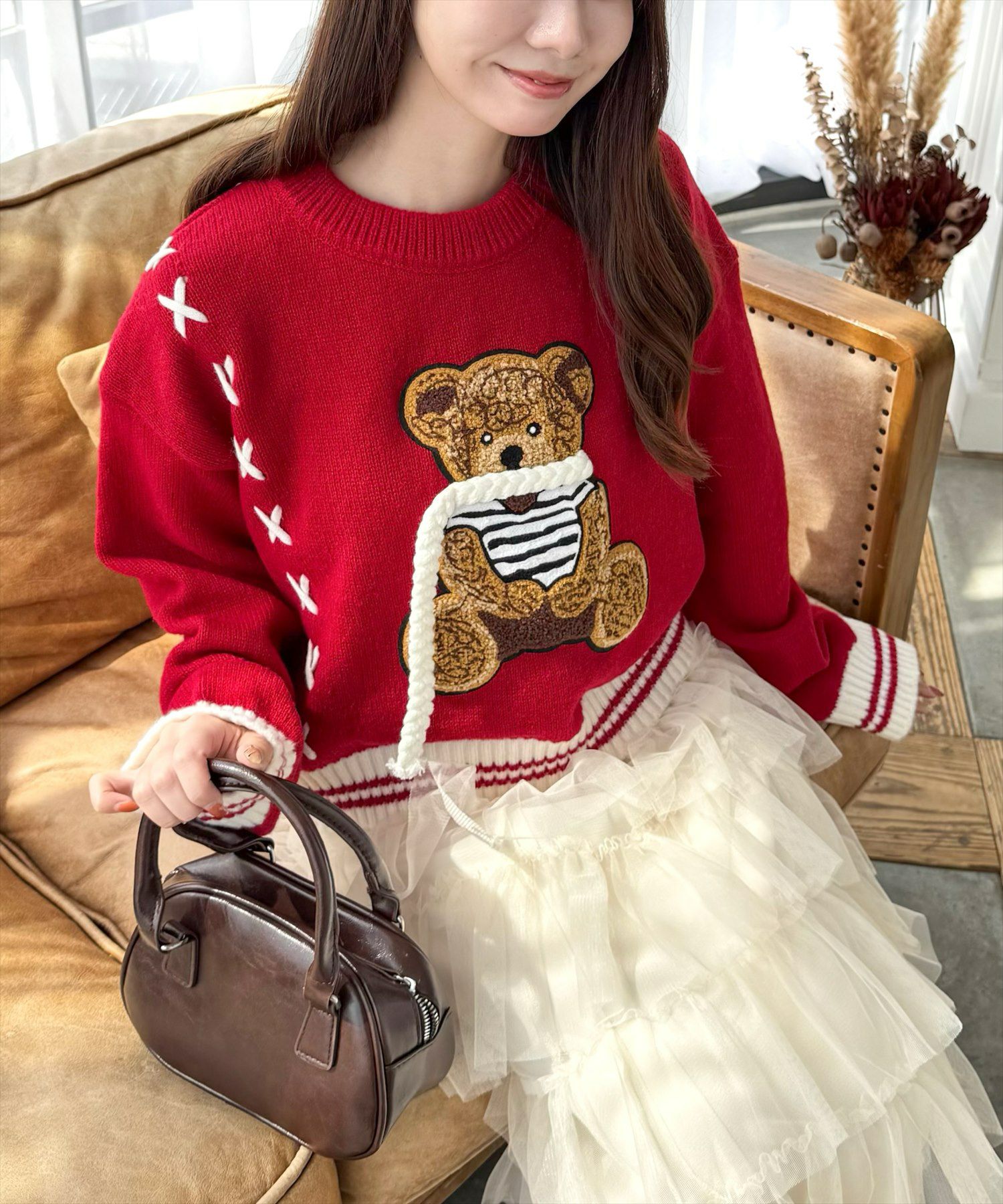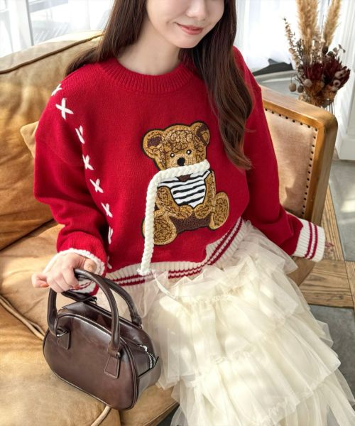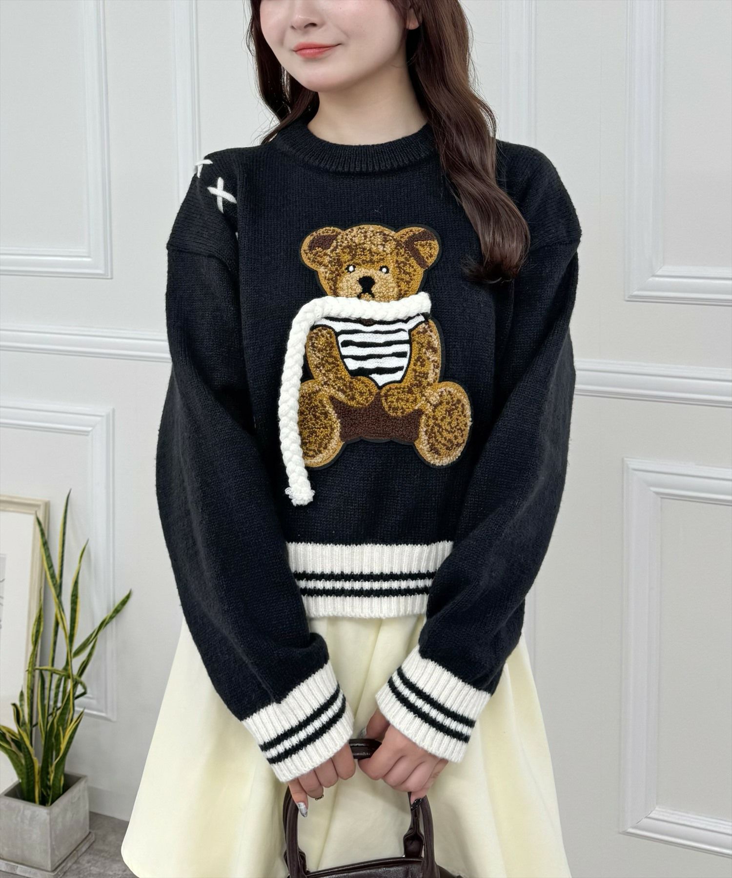 clear サガラ刺繍ベアワッペンニットトップス[CL8831]