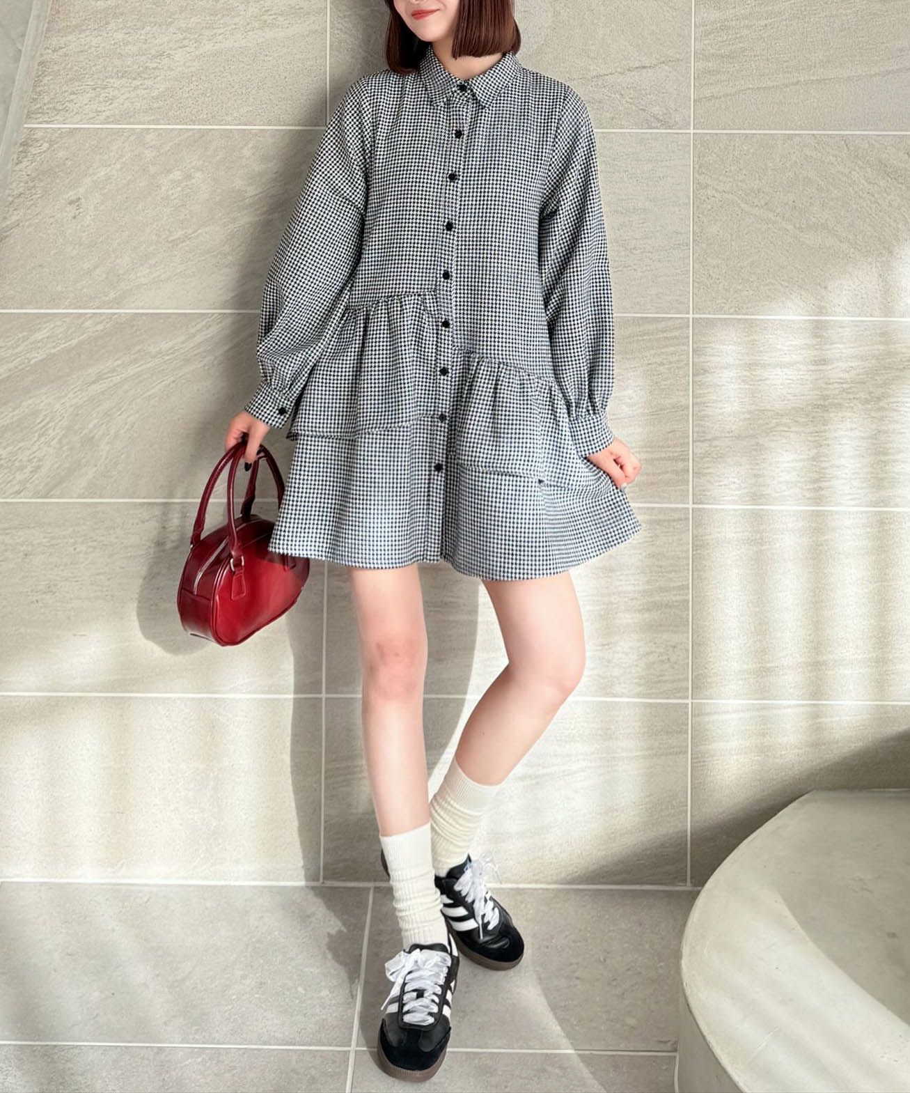 clear 千鳥柄裾アシメフリルシャツワンピース[CL8903]