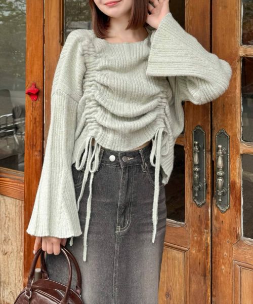 clear 肩スリットチュールリボンニットトップス[CL8851]